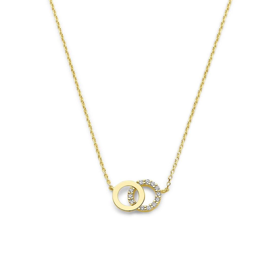 9k Geelgoudkleurig dames collier met zirkonia – verstelbaar tot 44 cm