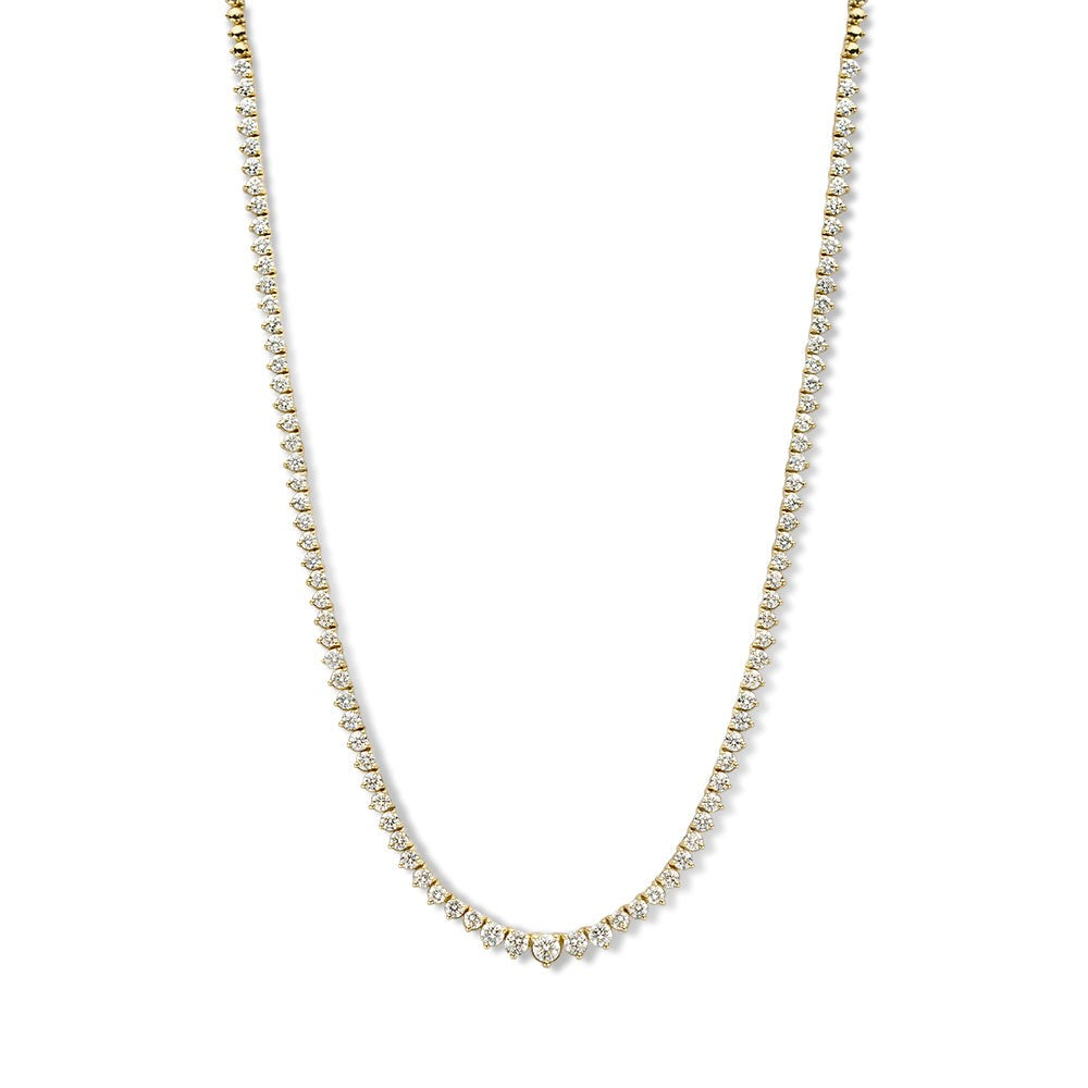Ontdek de schitterende Chloe collectie, stralend van de diamanten. Chloe is een serie tennisarmbanden en -colliers, een van de stijlvolste en tijdloze luxe juwelen. Het Chloe tenniscollier is aan de voorzijde volgezet met fonkelende diamanten in stevige zetkastjes. Het collier valt soepel om de hals en is dankzij de hoge kwaliteit een sieraad om vaak te dragen. Kies zelf de gewenste steengrootte van jouw diamanten. Het stijlvolle Chloe collier is in verschillende maten beschikbaar.