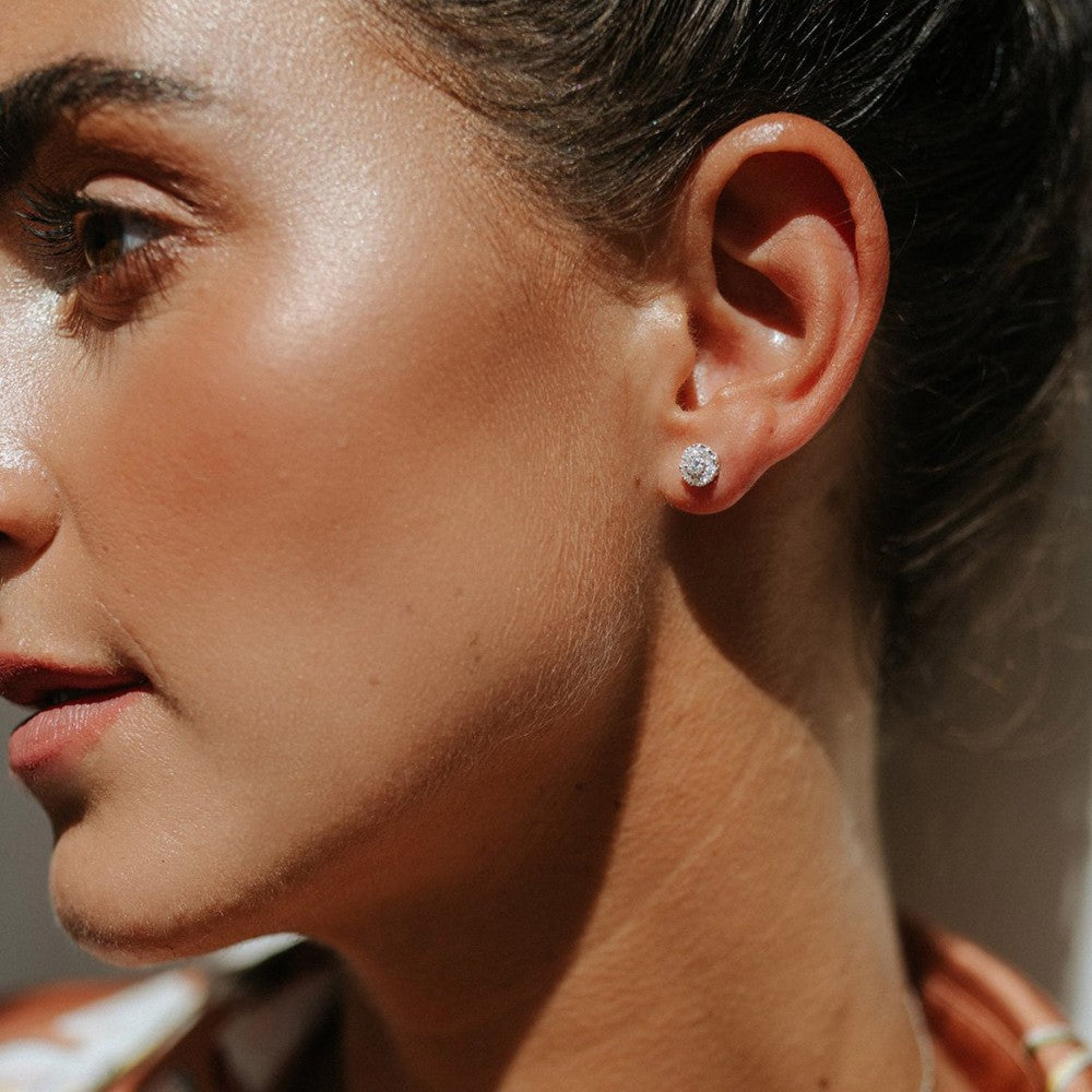 Emma is een serie schitterende sieraden met entourage zetting. De ronde middensteen (briljant geslepen) wordt hierbij omringd door kleinere briljanten. Kies zelf de gewenste steengrootte van jouw diamant. De Emma oorstekers zijn in verschillende maten beschikbaar.