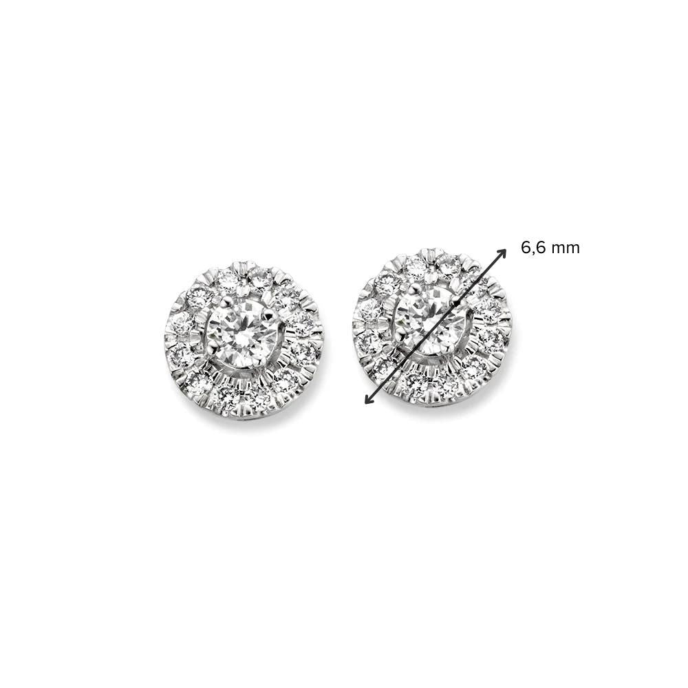 Deze oorbellen hebben een heldere gerhodineerd, witgouden zetting met diamant. De oorstekers zijn voorzien van stevige witgouden schuifjes, waardoor ze stevig in het hoor blijven zitten.