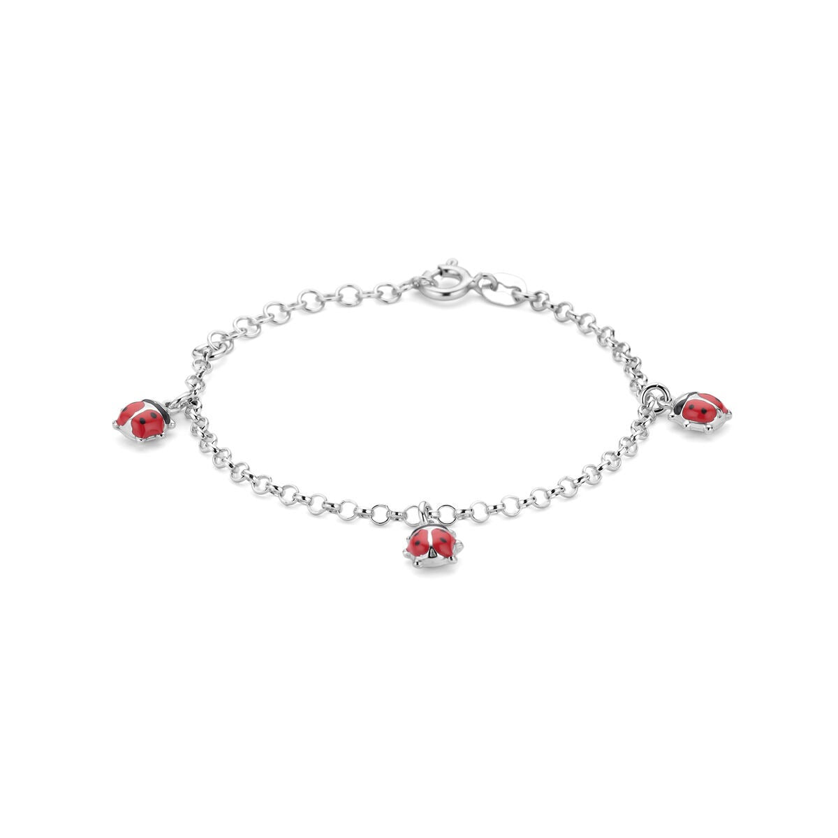 Zilveren kinderarmband met lieveheersbeestjes – gerhodineerd