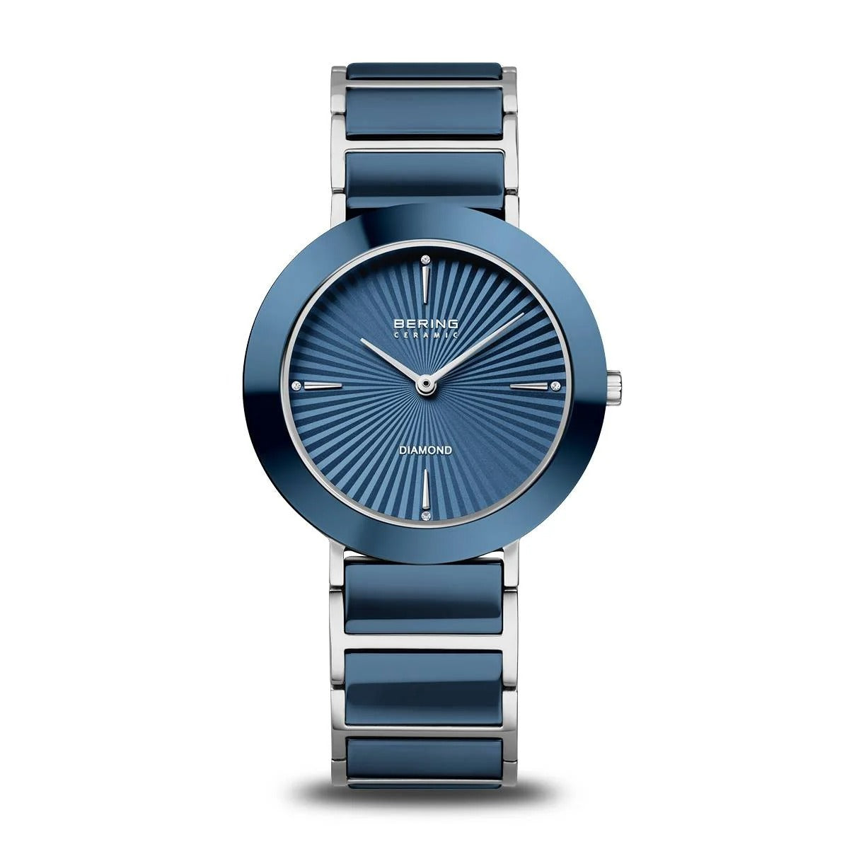 Een subtiel statement van verfijning en technologie: dit dameshorloge uit de Ceramic collectie combineert glanzend gepolijst staal met diepe blauwtinten en een luxueus gebruik van keramiek. De ronde kast van 38 mm wordt omlijst door een schitterende blauwe keramische bezel die elegant contrasteert met de zilverkleurige basis. Het vlakke saffierglas beschermt een fonkelende blauwe wijzerplaat, subtiel verfraaid met diamantelementen voor een sprankelend accent.