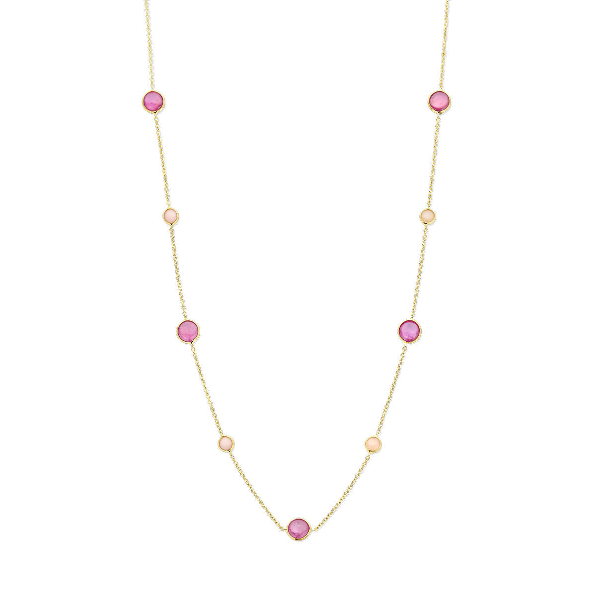 collier roze robijn en roze opaal 42 - 45 cm 14K geelgoud