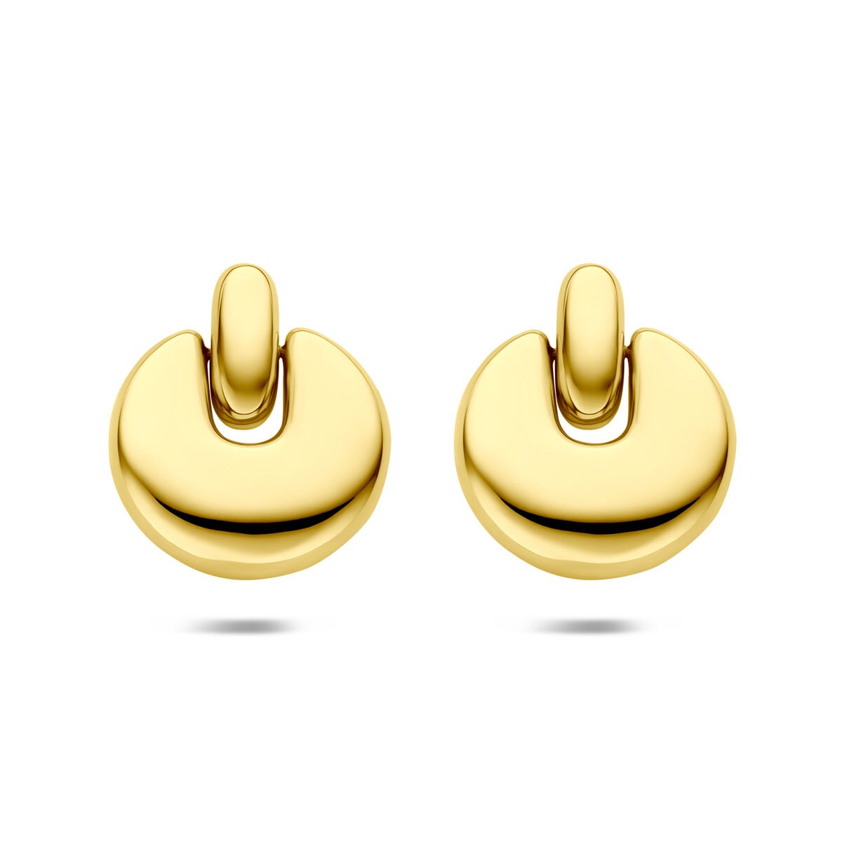 Deze moderne stalen oorhangers voor dames stralen kracht en elegantie uit. Met hun royale afmeting van 29,5 x 25,5 mm maken ze een stijlvol statement, zonder overdadig te zijn. De warme geelgouden kleur is verkregen door middel van duurzame ion plating, wat zorgt voor een intense, slijtvaste glans die perfect past bij een moderne, zelfbewuste stijl.