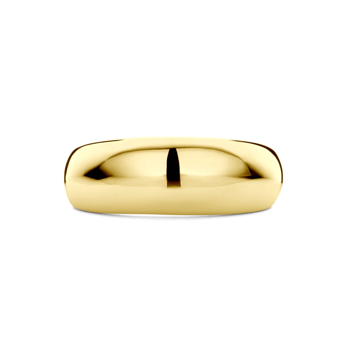 Deze 14 karaat geelgouden ring met een breedte van 7,5 mm straalt kracht, eenvoud en verfijning uit. Het tijdloze ontwerp wordt gekenmerkt door een glad gepolijste afwerking en de warme glans van massief geelgoud, wat het sieraad tot een elegante klassieker maakt.