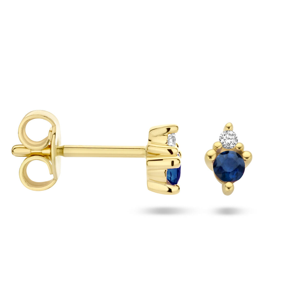 oorknoppen saffier en diamant 0.02ct (2x 0.01ct) h p1 14K geelgoud