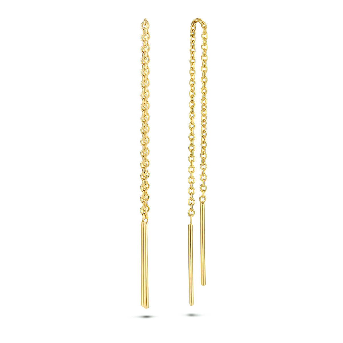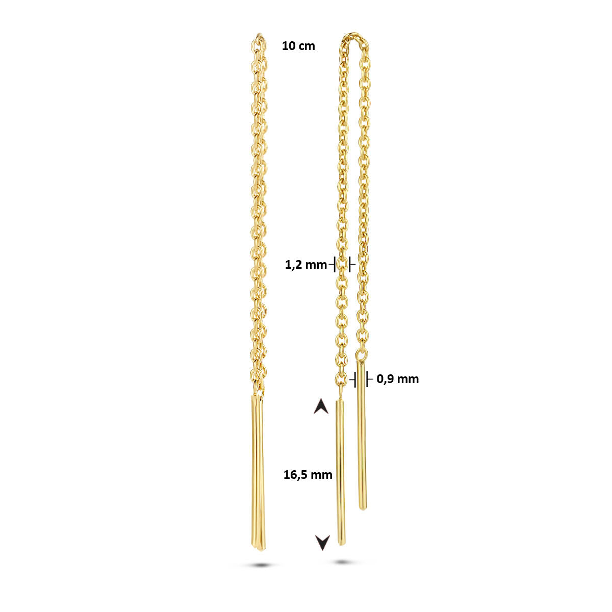 925 zilver vergulde doortrekoorbellen uitgevoerd met een balkje van 16.5x0.9mm. Geen garantie op plating.
