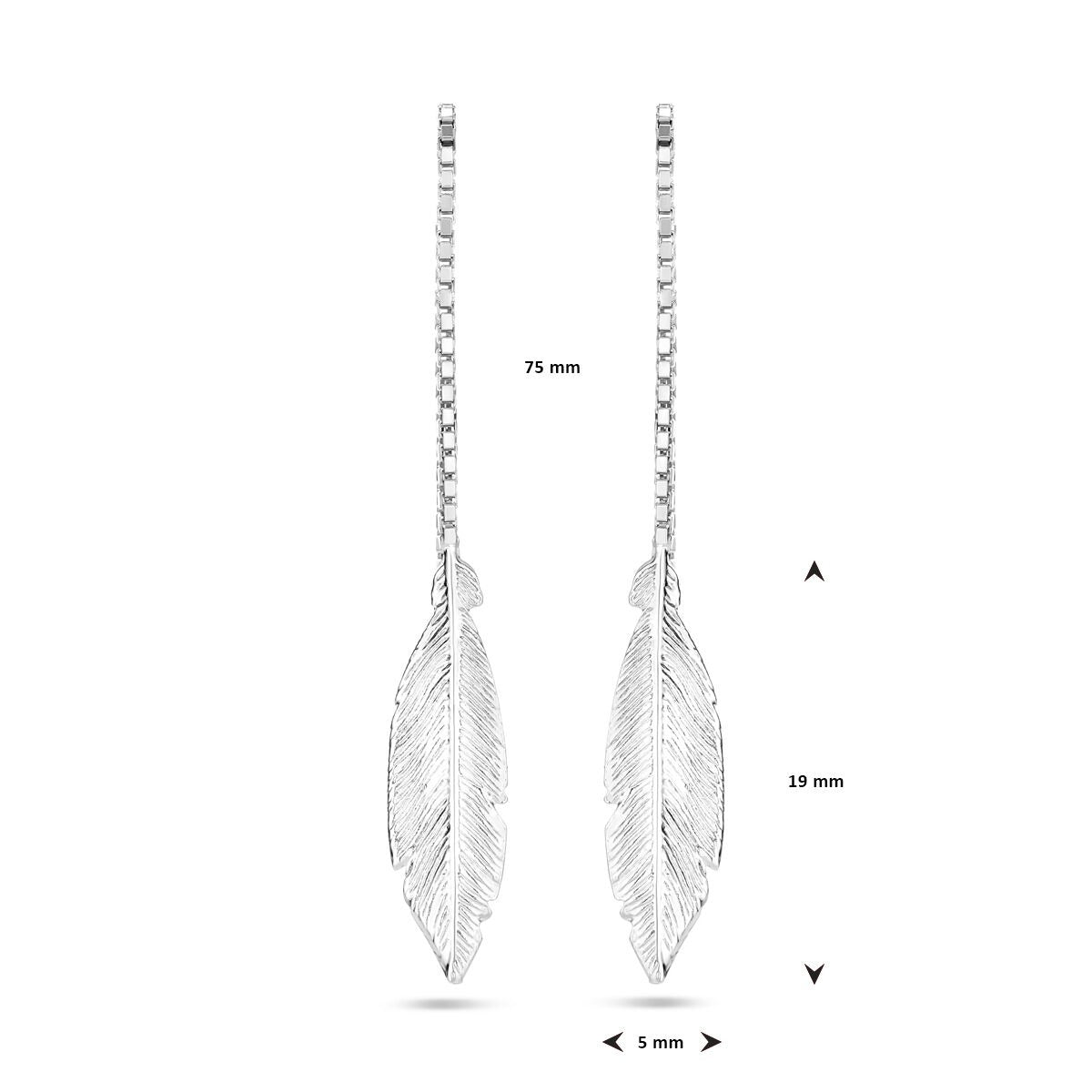 Zilveren doortrekoorbellen met veer – gerhodineerd