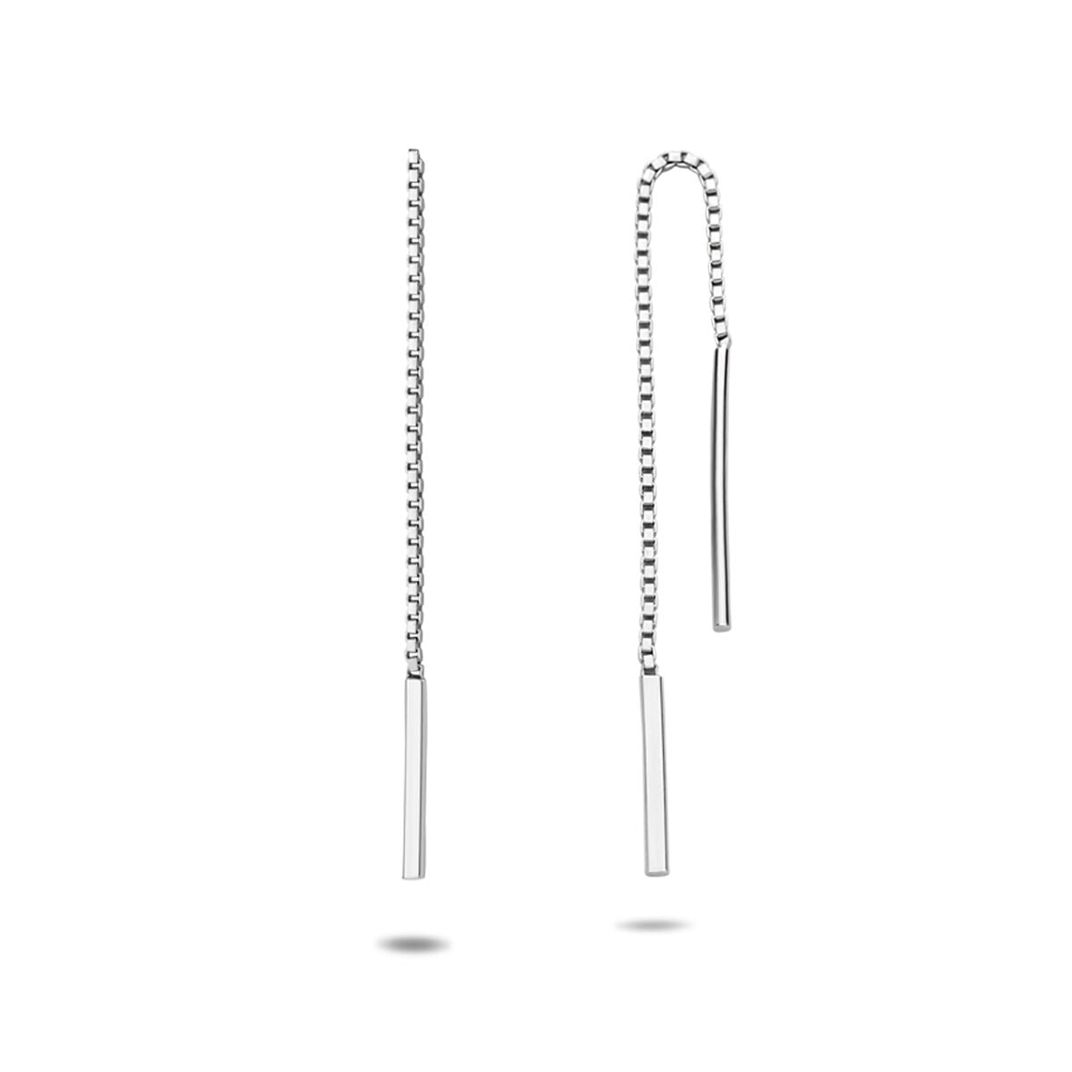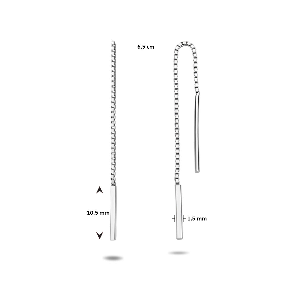 Deze elegante zilveren doortrekoorbellen zijn een verfijnde combinatie van minimalistisch design en moderne elegantie. Vervaardigd uit 925 wit zilver en uitgevoerd met subtiele staafvormige hangers, vormen ze een stijlvol accent bij elke outfit.