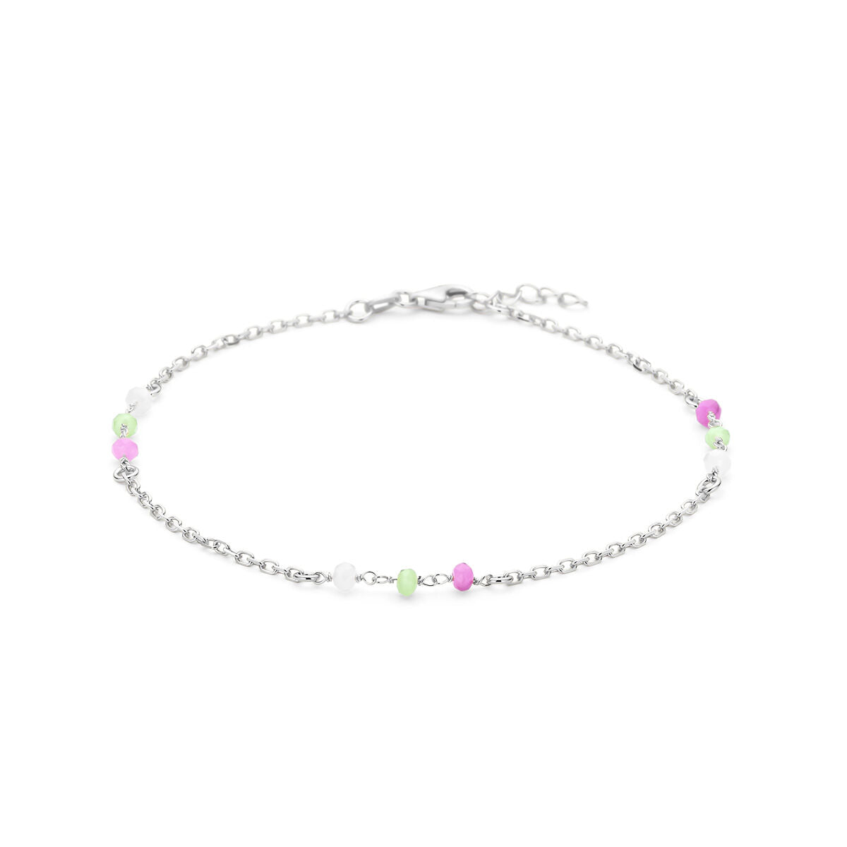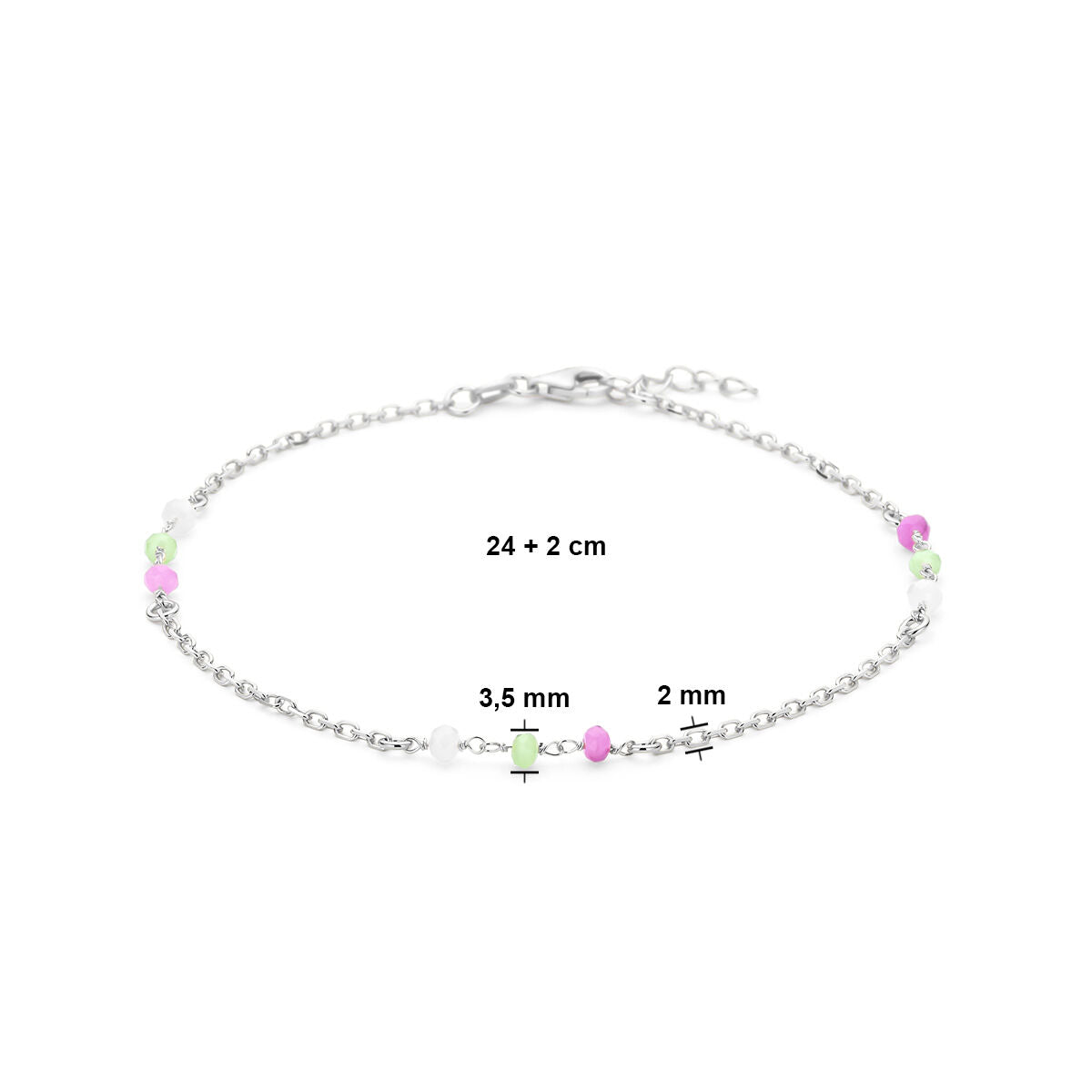 Zilveren enkelbandje met kristal in wit, groen en roze