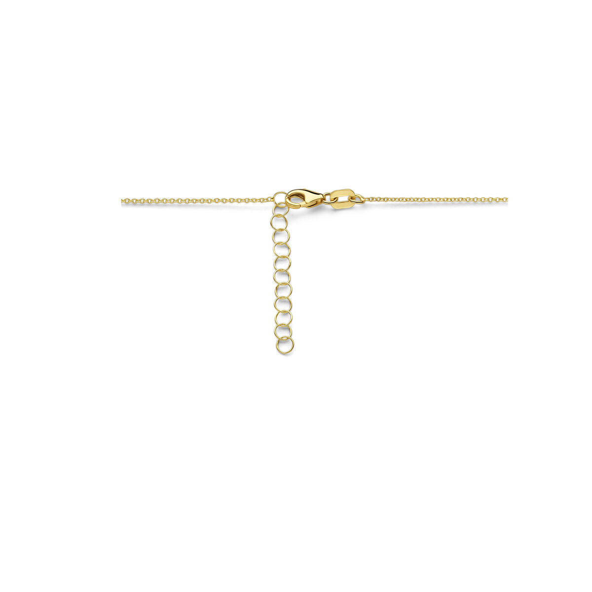 14k Geelgouden collier uitgevoerd met een graveerplaat van 3.6x16mm. Het collier heeft draaglengte van 41cm met 4cm extensie. De schakelbreedte is 1.6mm. De plaat heeft een dikte van 0.5mm.