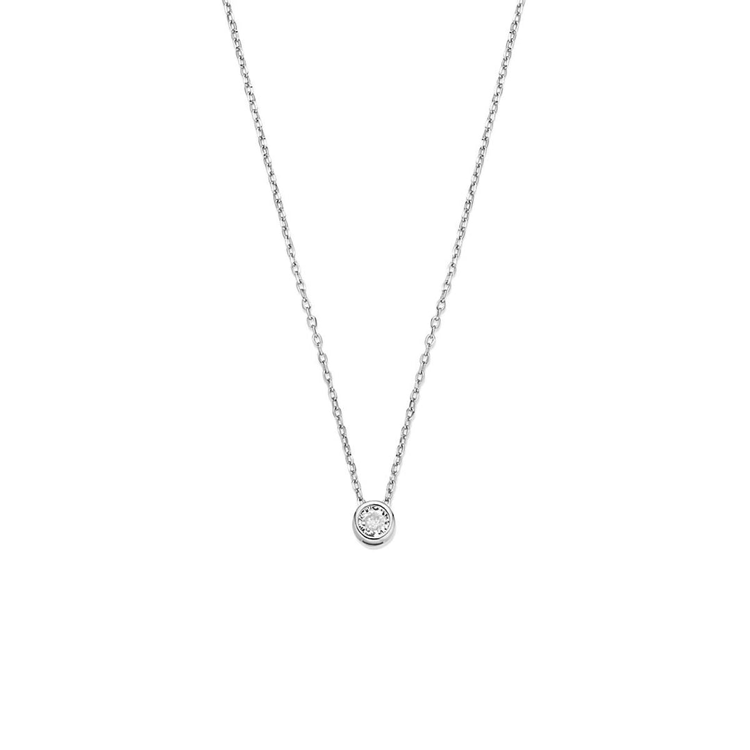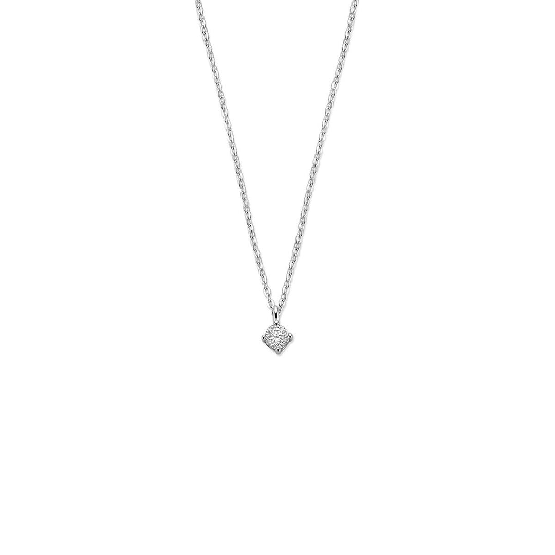 Zilveren collier met zirkonia hanger – gerhodineerd dames collier in solitaire stijl