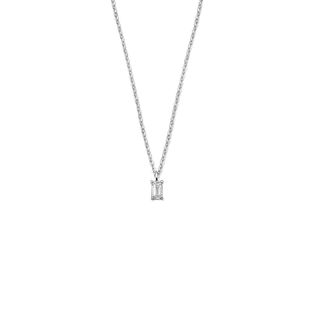 Zilveren ketting met ruitvormige zirkonia hanger 41 - 43 - 45 cm