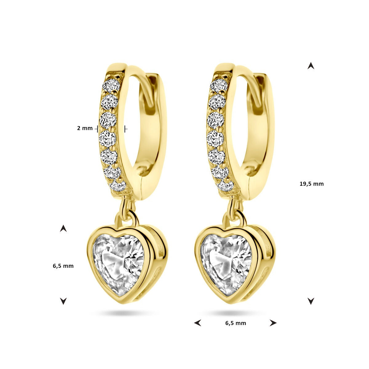 Vergulde zilveren oorringen met hartvormige zirkonia en entourage