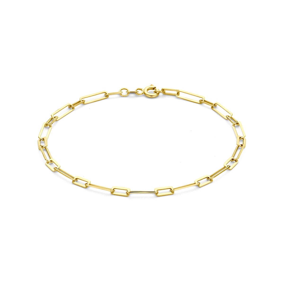 Deze 14 karaat geelgouden armband is een stijlvolle klassieker die elke pols elegant siert. Met haar 3 mm brede anker schakels straalt ze verfijning uit, zonder in te boeten op karakter. De warme glans van het goud geeft het sieraad een luxe uitstraling, terwijl de degelijke veerringsluiting zorgt voor een comfortabele en veilige pasvorm.