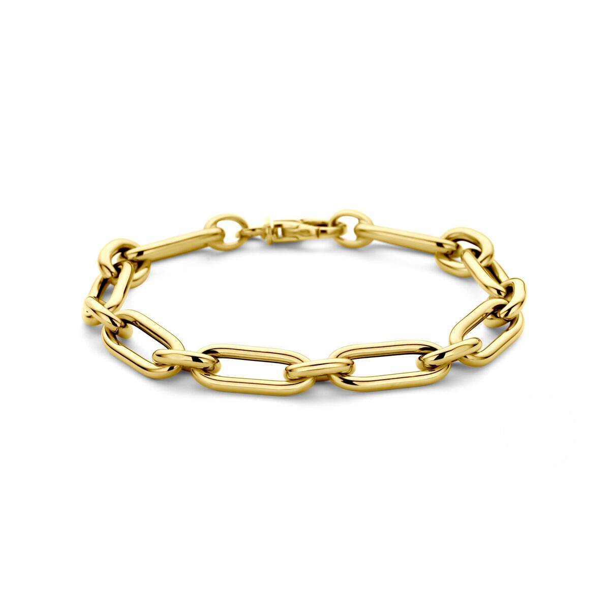 De stevige karabijnsluiting biedt zowel veiligheid als draagcomfort. Of u haar solo draagt als blikvanger of combineert met andere gouden dames armbanden, deze armband is een waardevolle toevoeging aan elke sieradencollectie.