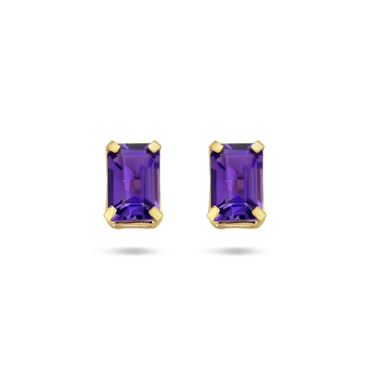 14k Geelgouden amethist oorknoppen met een afmeting van 6x4mm.