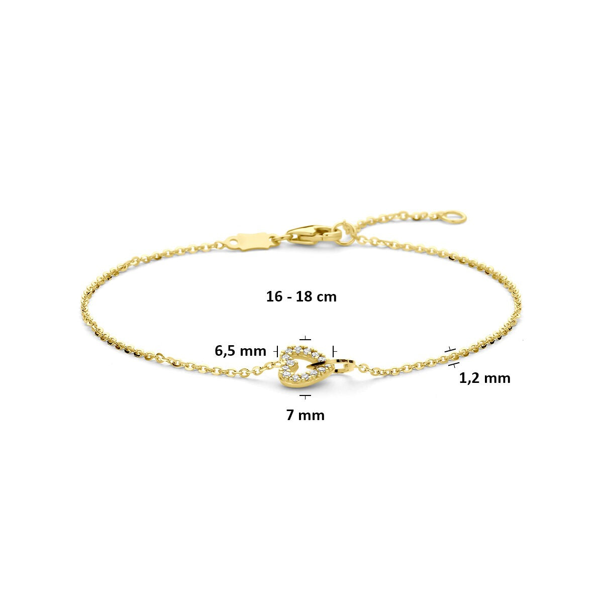14k geelgouden hartjes armband met zirkonia
