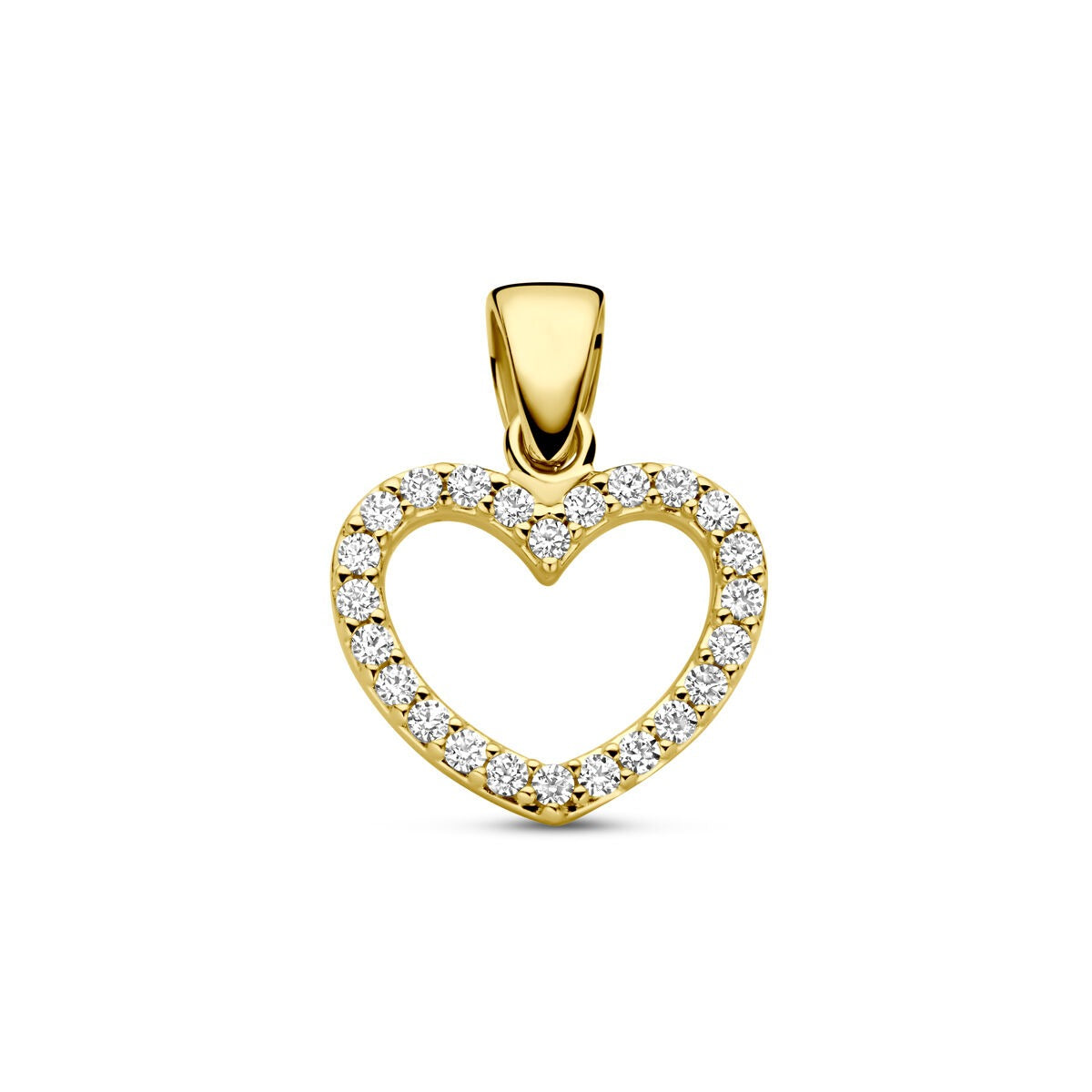 14k geelgouden hartjeshanger met zirkonia – romantisch dames sieraad vol schittering