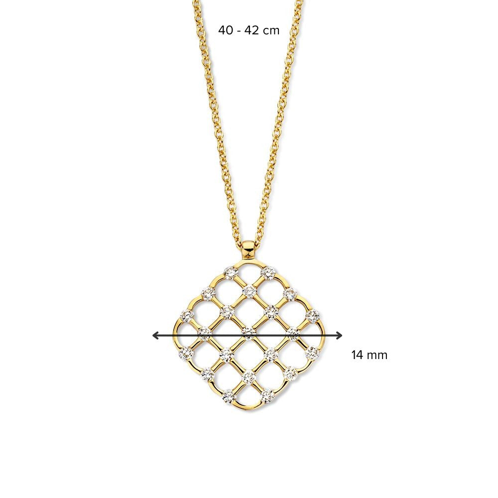 Gemaakt van 14 karaat hoogwaardig geelgoud en bezet met 0,22 karaat aan fonkelende diamanten in de kleur wit, is dit collier zowel stijlvol als veelzijdig. Het zachte glimmen van het goud en de sparkle van de diamanten vormen samen een sieraad dat elk moment bijzonder maakt. Dit collier is zorgvuldig vervaardigd door ervaren vakmensen, wat de kwaliteit en unieke uitstraling versterkt.