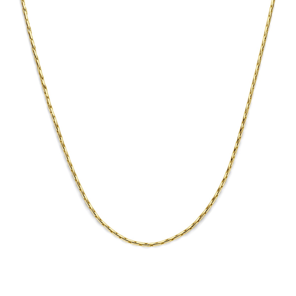 Dit verfijnde gourmette collier is vervaardigd uit 14k geelgoud met een kern van massief 925 zilver, ook wel bekend als Silgold. Met een schakelbreedte van 2,8 mm en een lengte van 45 cm biedt dit collier een subtiel maar luxe accent aan elke outfit.