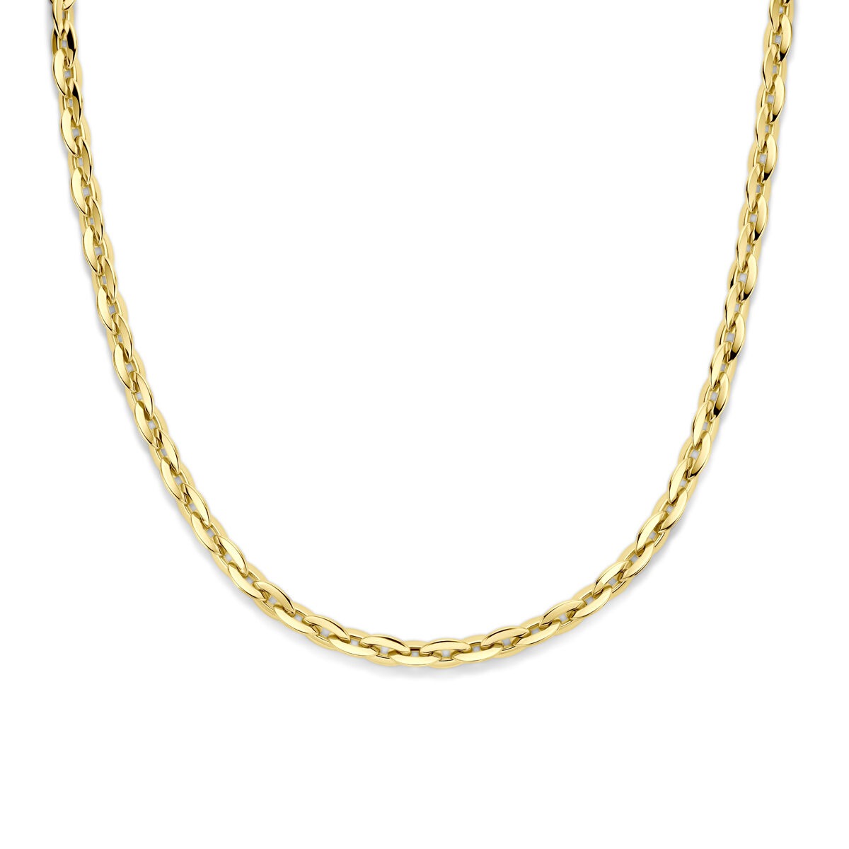Dit 14k geelgouden collier is een krachtig en stijlvol statement van vakmanschap en elegantie. De brede anker schakels van 8,5 mm geven het collier een robuuste, luxueuze uitstraling, terwijl het warme geelgoud zorgt voor een tijdloze glans. Met een draaglengte van 45,5 cm valt het mooi op de hals en vormt het de perfecte basis voor een opvallende look.
