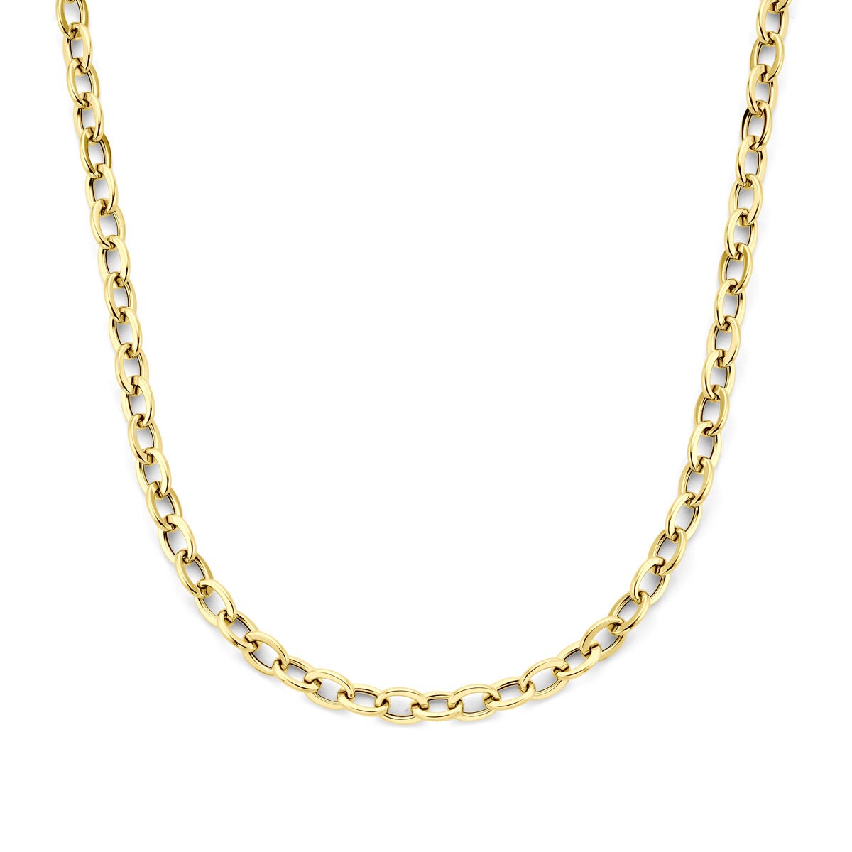 Deze 14k geelgouden dames ketting is een statement van moderne elegantie en kracht. Met een royale schakelbreedte van 8,5 mm en een bijzondere combinatie van ronde en rechthoekige draadschakels straalt dit collier een uitgesproken stijl en karakter uit. De warme glans van het geelgoud geeft het ontwerp een tijdloze allure, terwijl de opvallende schakels zorgen voor een eigentijdse twist.