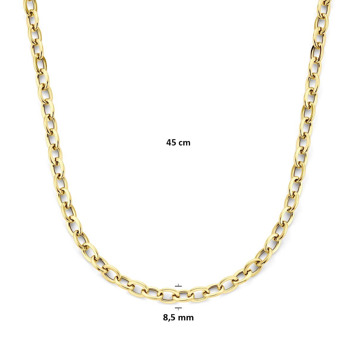 14k geelgouden dames ketting met ronde en rechthoekige draadschakels 8.5mm