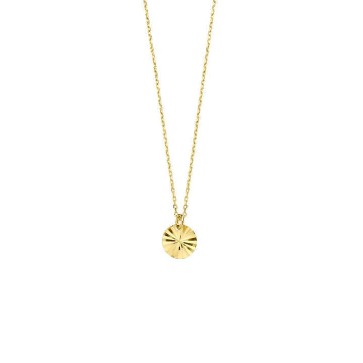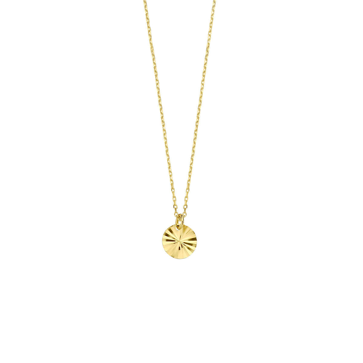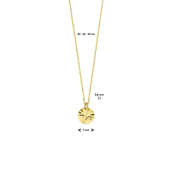14k Geelgouden collier uitgevoerd met een gediamanteerd afgewerkt rondje. Het collier heeft draaglengtes van 40, 42 en 44cm. Het rondje heeft een diameter van 7mm. De schakelbreedte is 0.8mm.