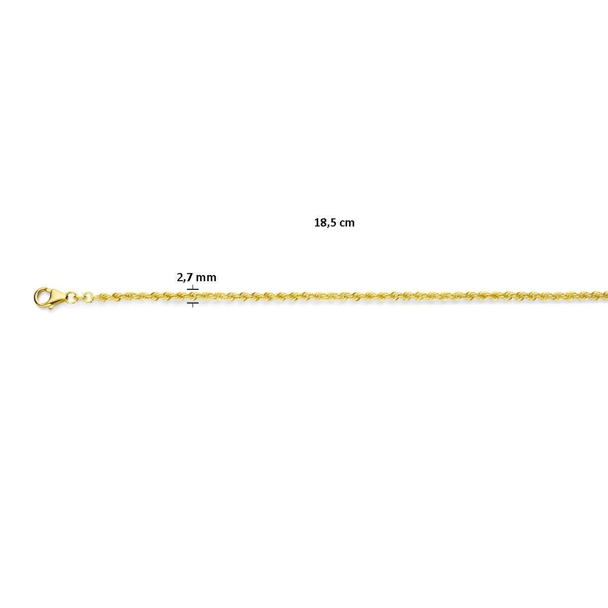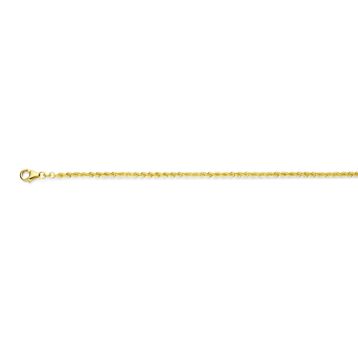 14k Geelgouden koord lengte-artikel uitgevoerd met een karabijn sluiting. De schakelbreedte is 2.7mm.