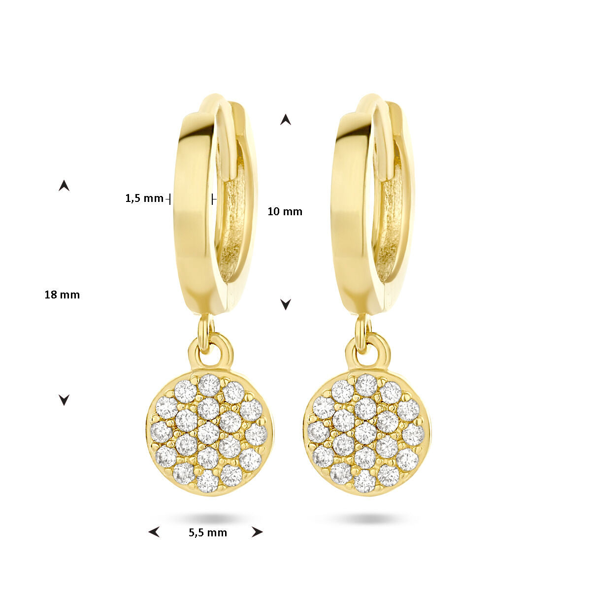 14k Geelgouden klapoorringen uitgevoerd met zirkonia. De klapoorringen hebben een totale hoogte van 18mm.