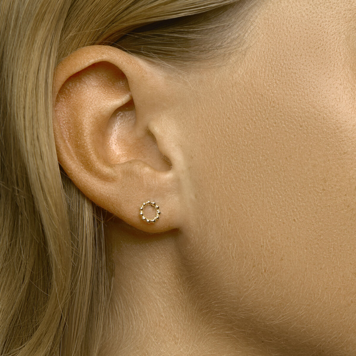 14k Geelgouden ronde oorknoppen uitgevoerd met bolletjes. De oorknoppen hebben een diameter van 7mm.