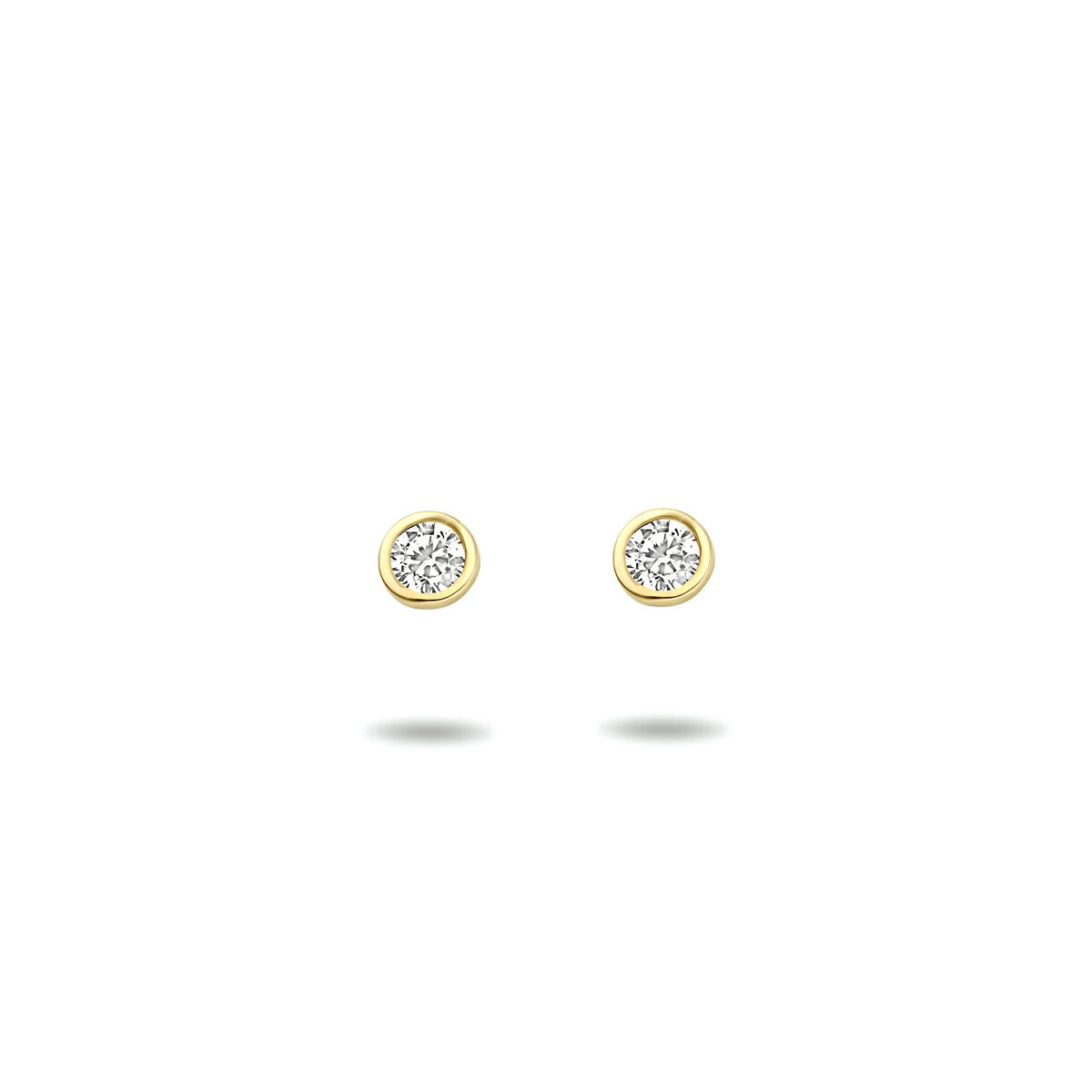 14k Geelgouden oorknoppen uitgevoerd met een heldere zirkonia. De oorknoppen hebben een diameter van 2.5mm.