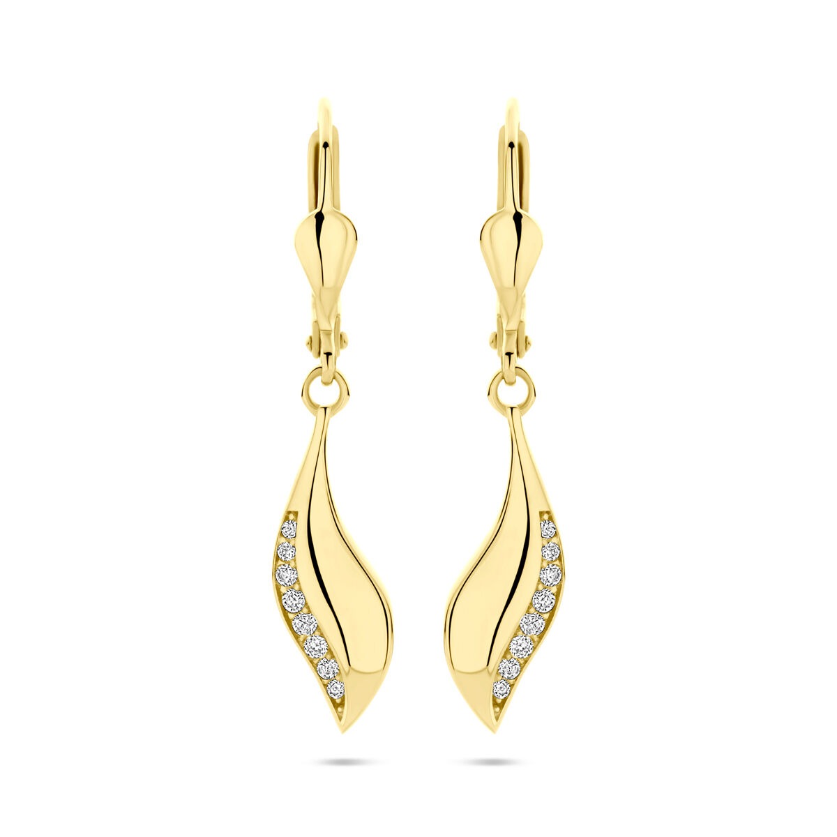 14k Geelgouden oorhangers met zirkonia – 32 mm hoog