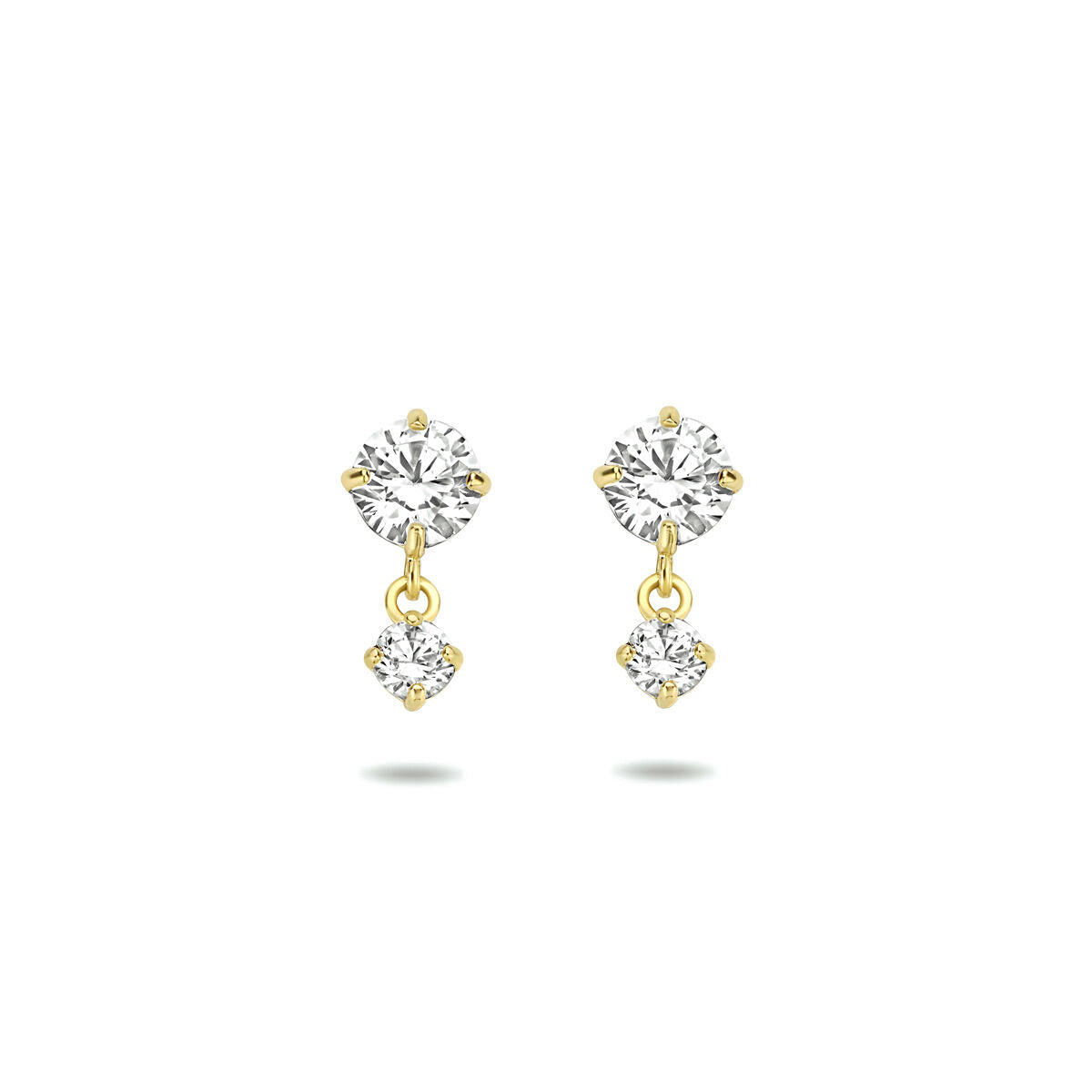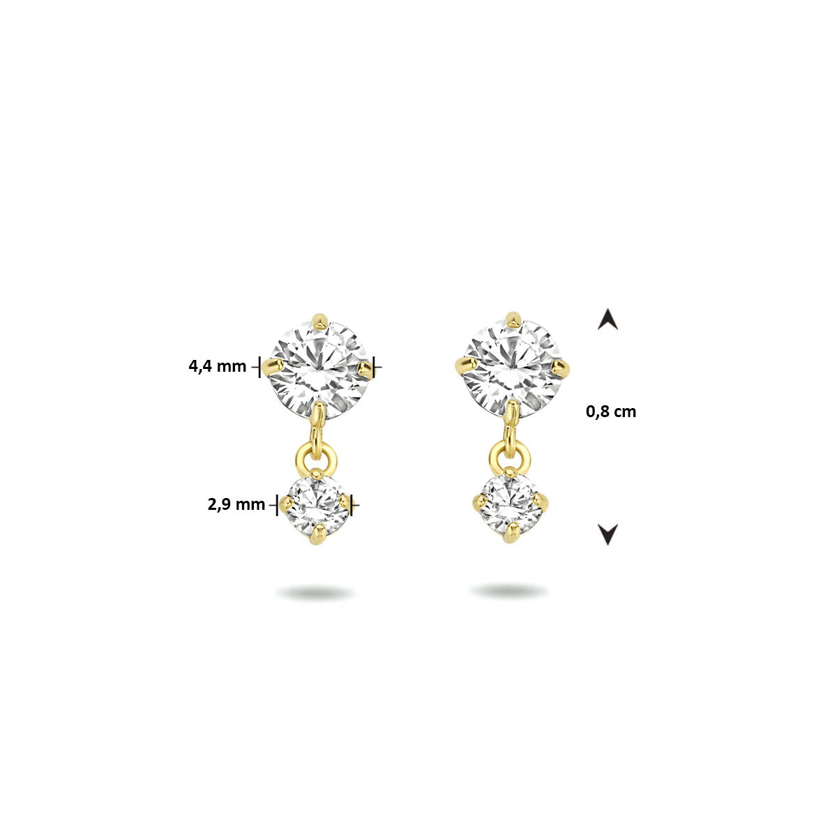 14k Geelgouden oorhangers uitgevoerd met schitterend zirkonia. De oorhangers hebben een een totale hoogte van 8mm en een breedte van 4.4mm.