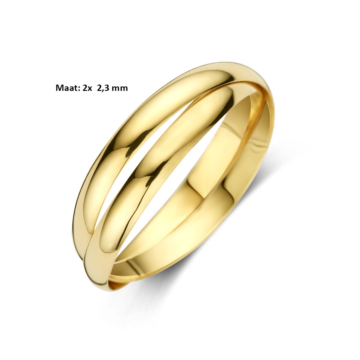 14k Geelgouden dames ring met dubbele band – 2 x 2,3 mm