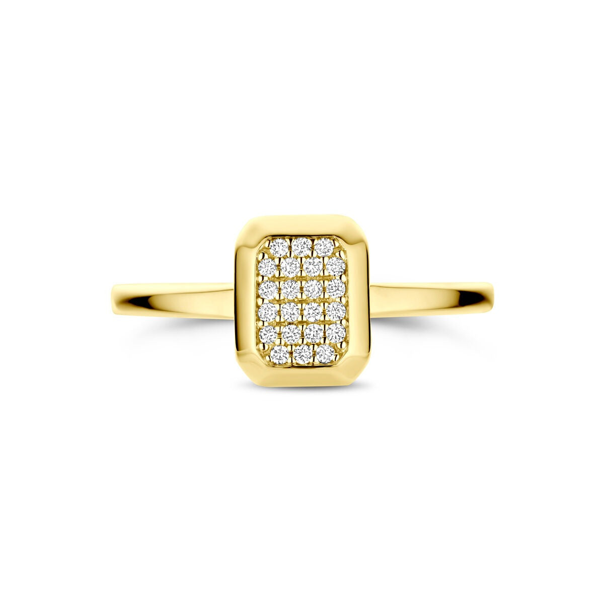 Deze 14 karaat gouden dames ring is een prachtig voorbeeld van elegantie in een krachtig ontwerp. De brede band van 9 mm straalt karakter uit, terwijl de pavé gezette briljant geslepen diamanten – met een totaalgewicht van 0,10 karaat – zorgen voor een verfijnde fonkeling. De diamanten, met SI1-zuiverheid en een transparante schittering, zijn harmonieus verwerkt in het goud, wat zorgt voor een sprankelend geheel met een zachte, vrouwelijke uitstraling.