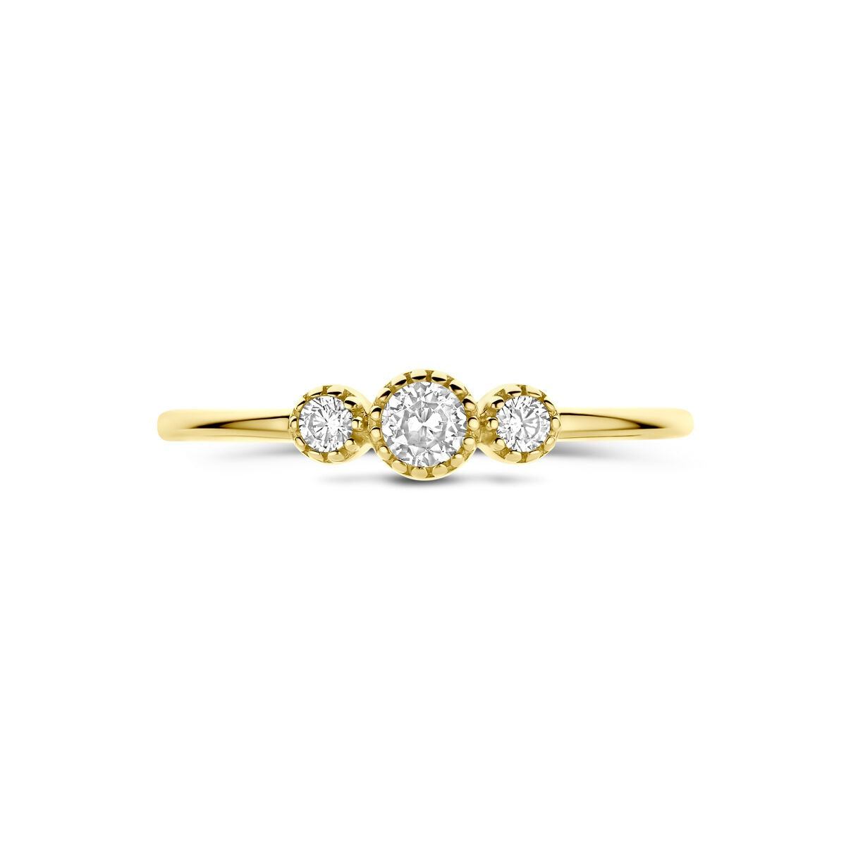 Het warme geelgoud vormt een tijdloos contrast met de transparante zirkonia, wat de ring een elegante en veelzijdige uitstraling geeft. Perfect voor dagelijks gebruik of als betekenisvol cadeau voor een bijzonder moment. De solide zetting zorgt bovendien voor extra draagcomfort en duurzaamheid.