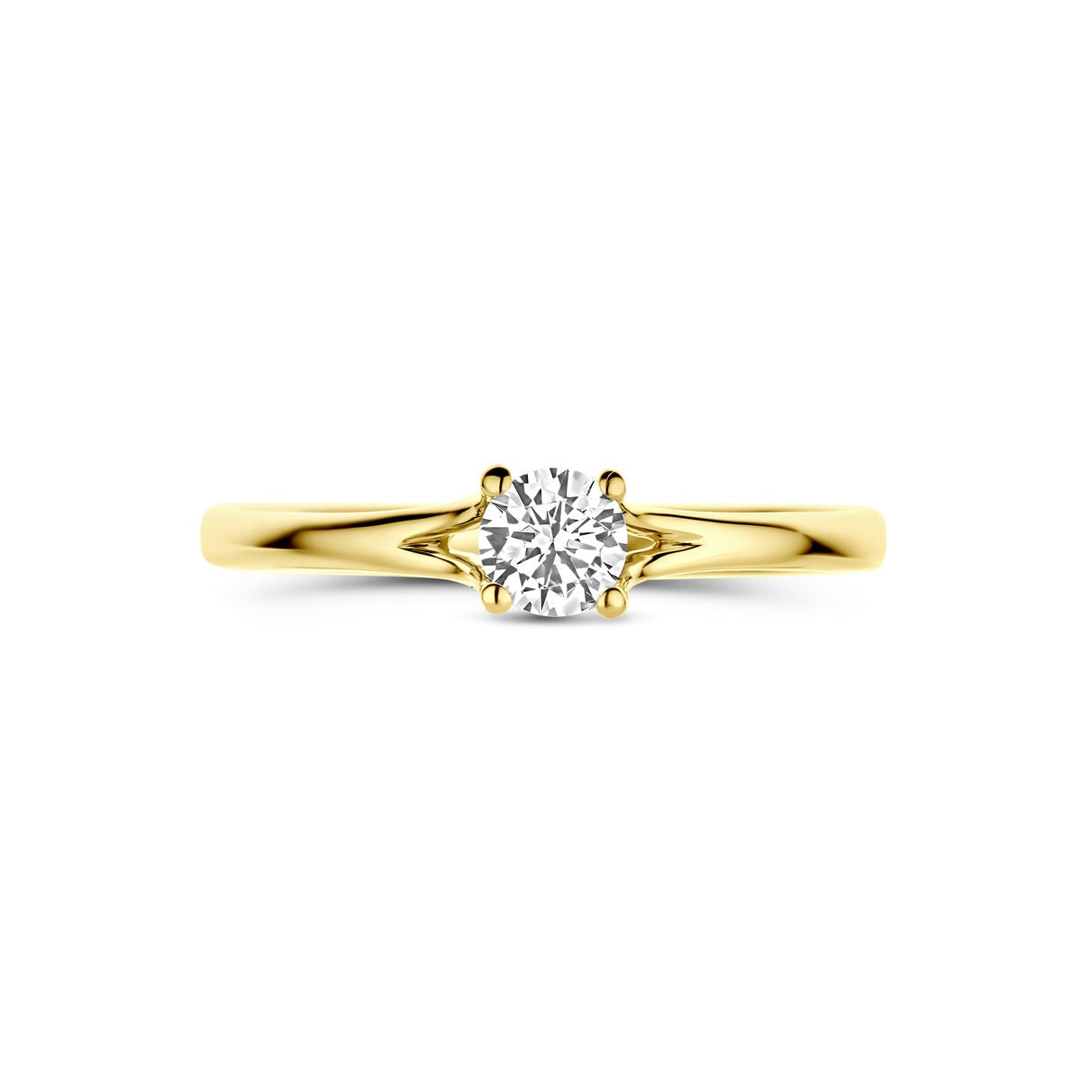 Met een bandbreedte van 4 mm oogt de ring elegant en krachtig tegelijk. Het warme geelgoud vormt een stijlvol contrast met de heldere steen, wat dit sieraad bijzonder geschikt maakt als verlovingsring, symbolisch cadeau of stijlvolle aanvulling op elke dag.