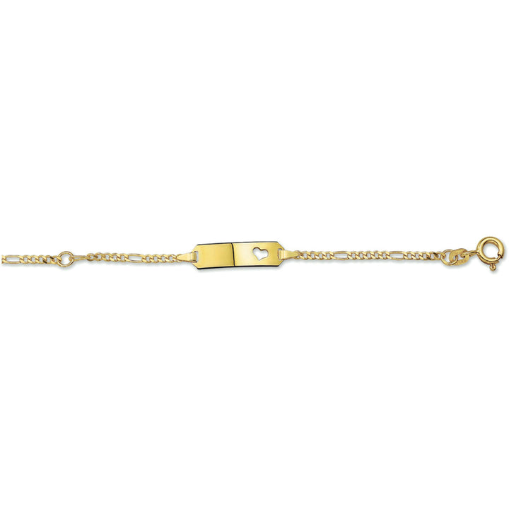 Geelgouden graveerarmband met een poli afwerking en een gestanst hartje. De graveerplaat heeft een dikte van 0.5mm.