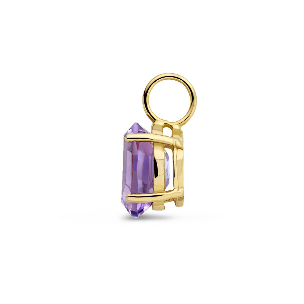 Met een afmeting van 11.5x5.0mm is deze hanger subtiel en toch opvallend genoeg om elke outfit te verheffen. De diep paarse amethist, geslepen in een ovale vorm en gezet in een chaton met vier pootjes, straalt een betoverende charme uit. Het warme goud van het 14K geelgoud vormt een perfecte aanvulling op de rijke kleur van de amethist, waardoor een tijdloos stuk ontstaat dat perfect past bij elke gelegenheid.