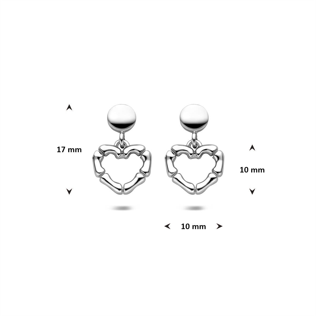 Deze zilveren hartjes oorbellen zijn een romantisch detail met een tijdloze uitstraling. Gemaakt van gerhodineerd 925 zilver behouden ze hun prachtige glans en zijn ze extra bestand tegen krassen en verkleuring. De sierlijke hartvorm – met een hoogte van 16,5 mm en een breedte van 10 mm – geeft deze oorhangers een zachte, vrouwelijke uitstraling die perfect past bij momenten van liefde.