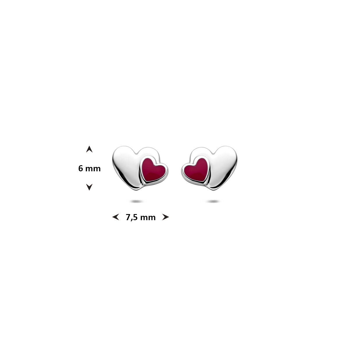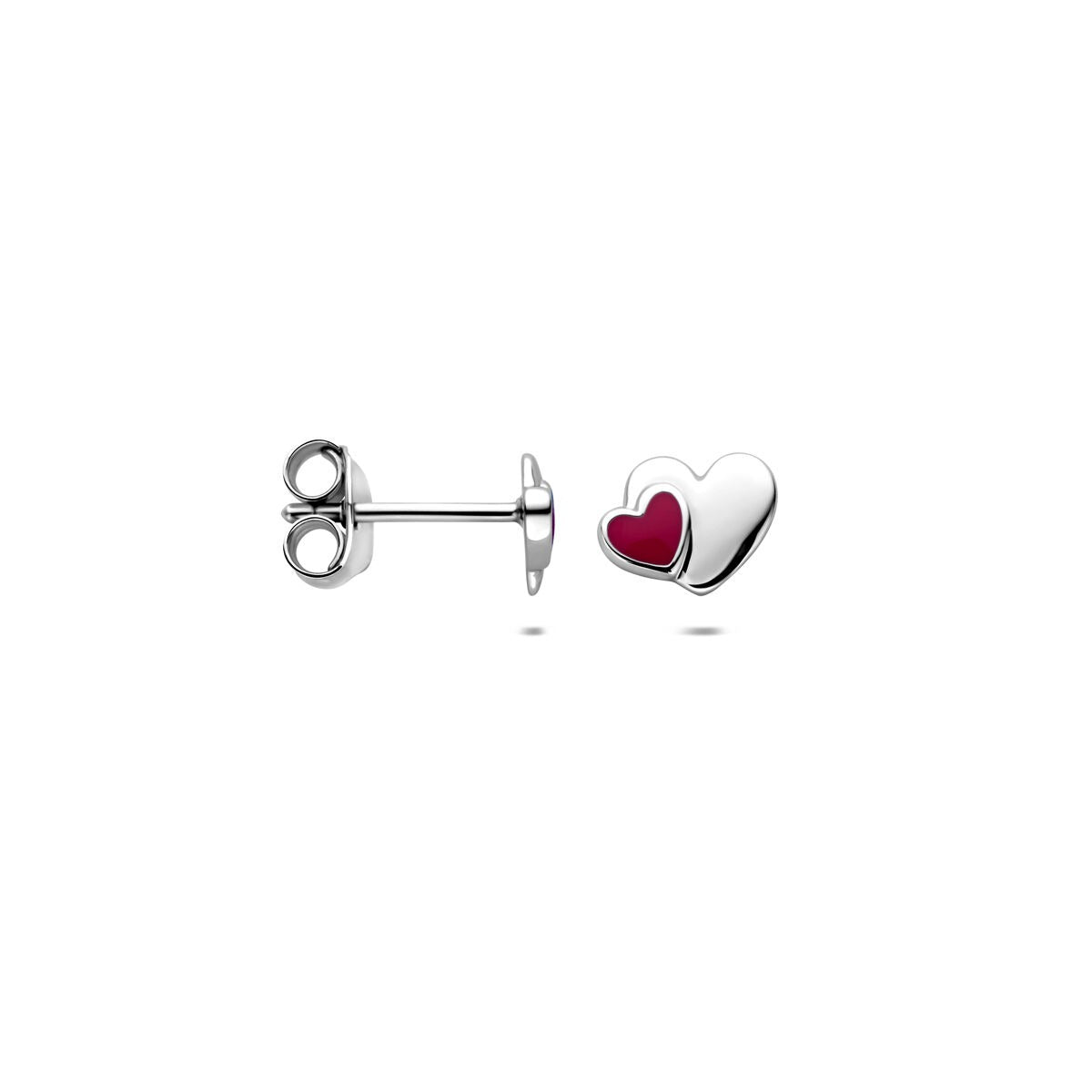 Liefdevol en speels: deze gerhodineerd 925 zilveren oorknopjes zijn speciaal ontworpen voor kinderen en uitgevoerd met een schattig roze hartje in glanzende emaille. Met hun zachte afmeting van 6 x 7,5 mm passen ze perfect bij jonge oortjes en zijn ze comfortabel te dragen dankzij de veilige poussettesluiting.