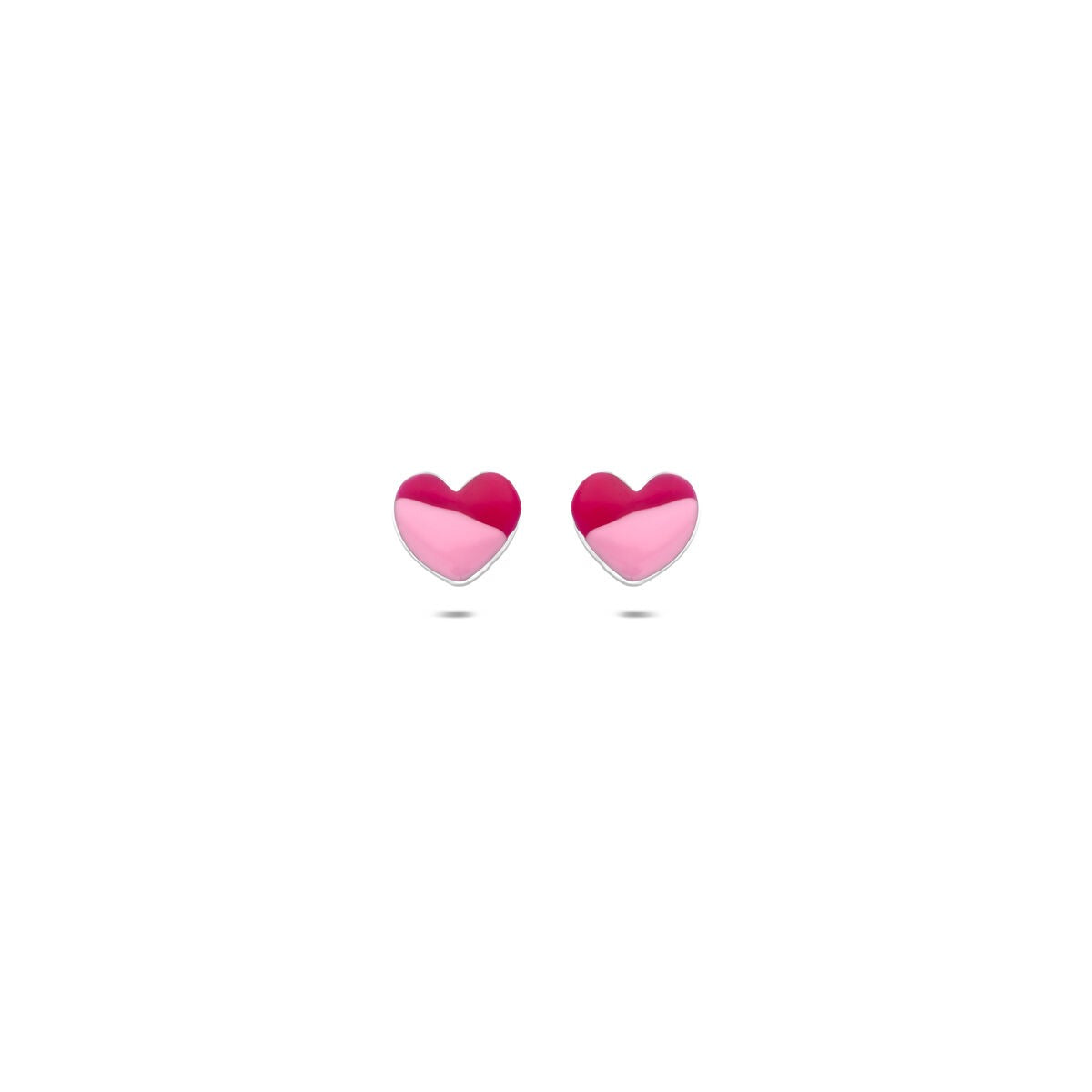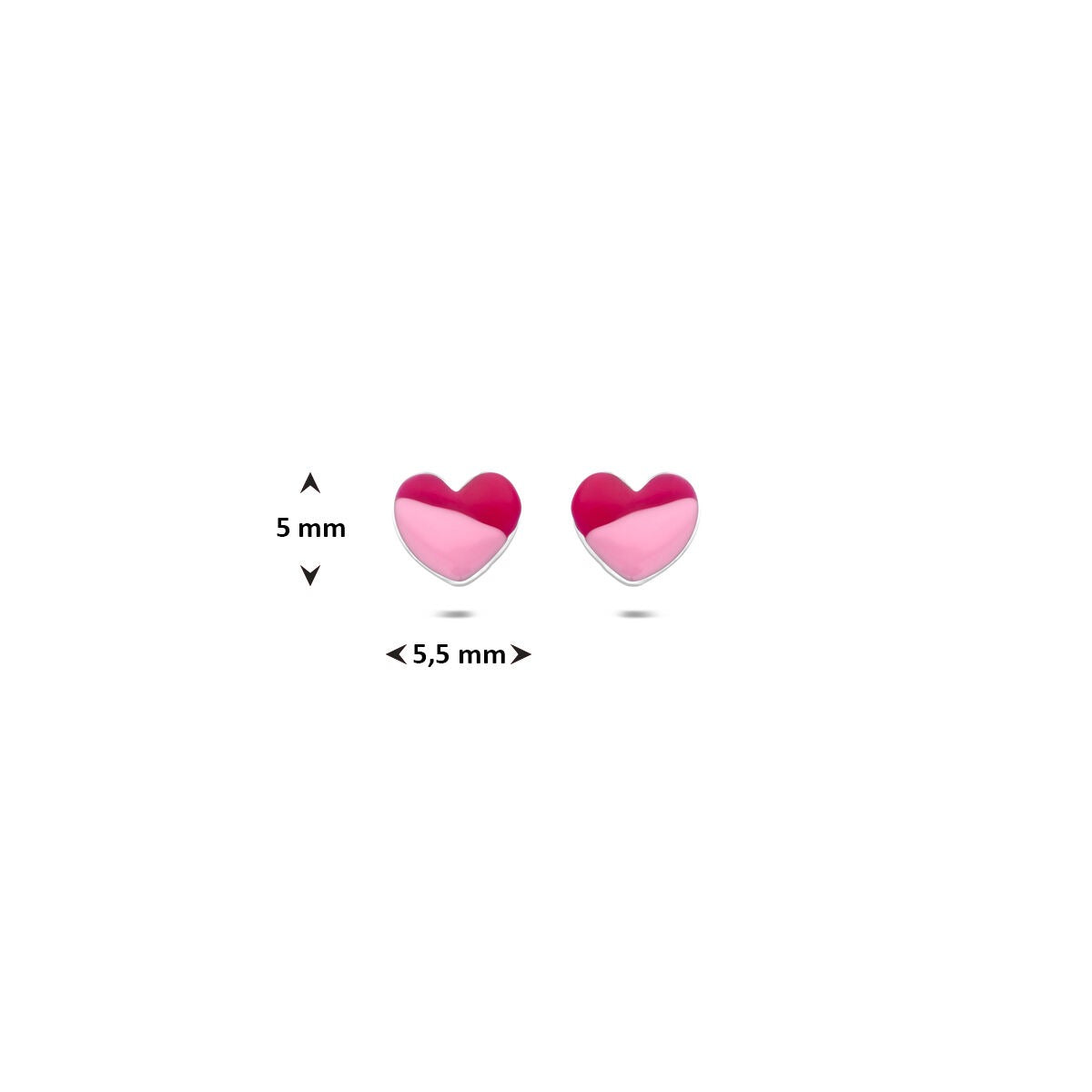 Deze lieve gerhodineerd 925 zilveren oorknoppen in de vorm van een hartje zijn het perfecte sieraad voor kinderen. De hartjes hebben een afmeting van 5 x 5,5 mm en zijn speels afgewerkt met emaille in donkerroze en lichtroze tinten, wat zorgt voor een vrolijk en charmant accent. Dankzij de glanzende zilverkleurige omlijsting stralen de oorbellen een tijdloze elegantie uit, terwijl de poussettesluiting zorgt voor een veilige en comfortabele pasvorm.