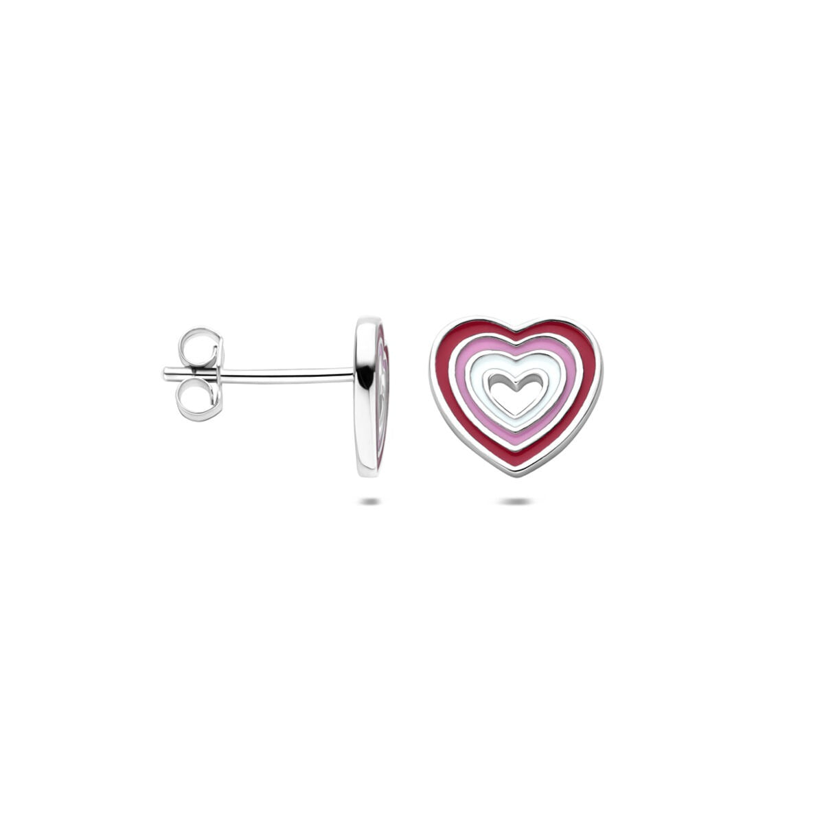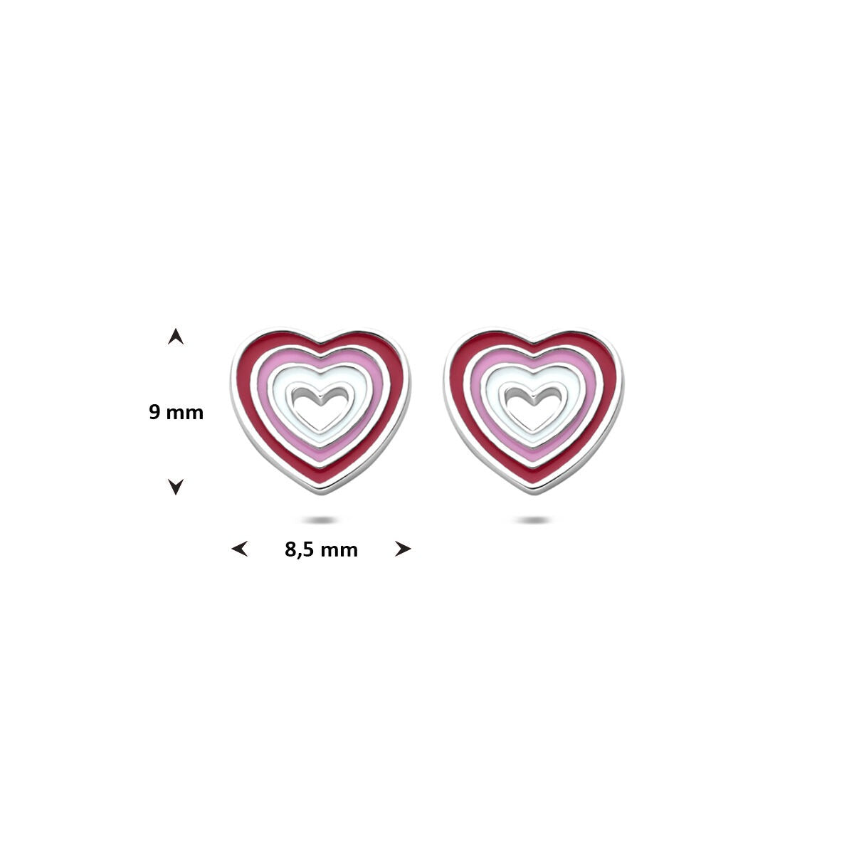 Deze betoverende gerhodineerd 925 zilveren oorknopjes in de vorm van een hartje zijn het perfecte symbool van liefde en tederheid. Met een speels ontwerp in donkerroze, lichtroze en zilverkleurige accenten spreken deze oorstekers tot de verbeelding van jonge sieradenliefhebbers. De afmeting van 9 x 8,5 mm geeft ze een charmante uitstraling zonder te overheersen.