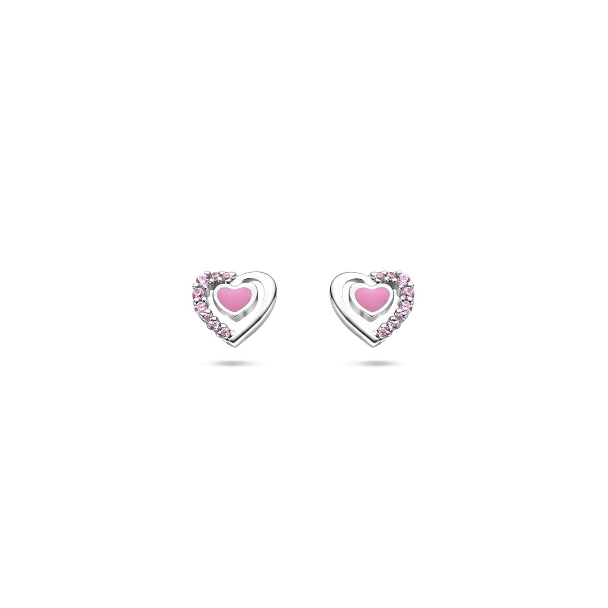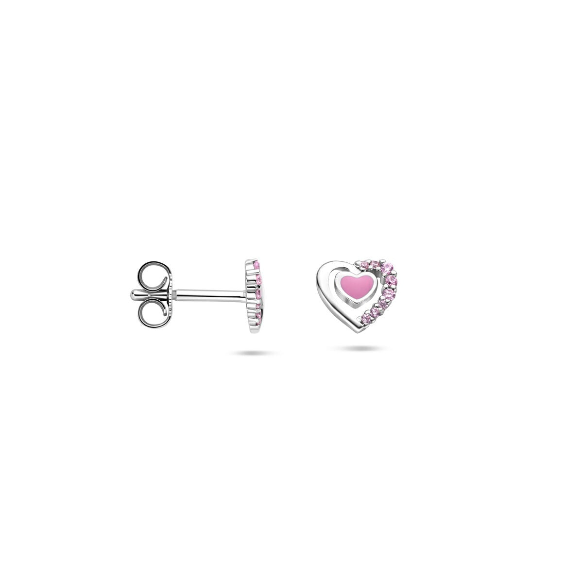 Zilveren kinder oorknopjes hartjes met roze zirkonia – Kinder Oorbellen
