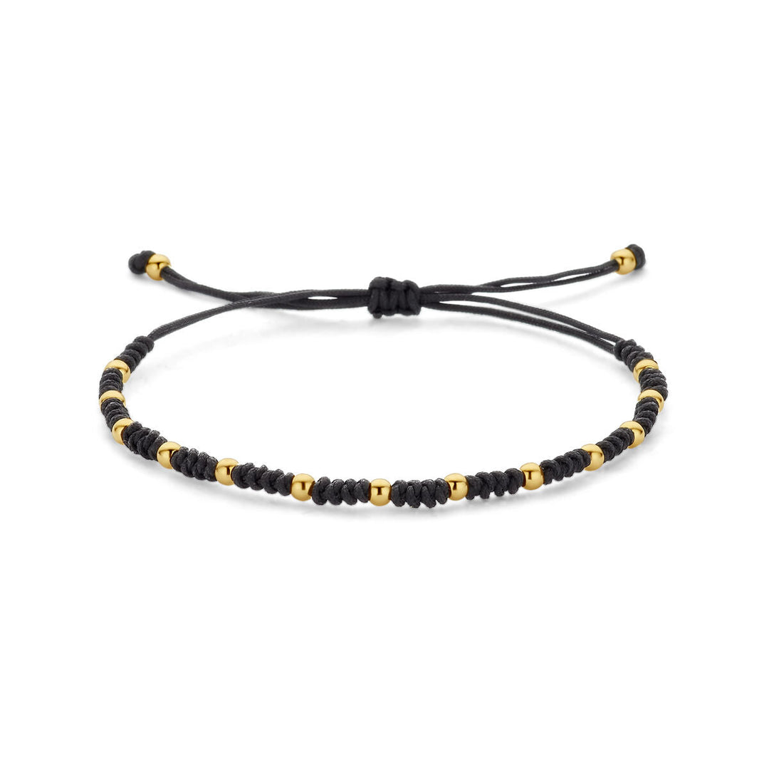 armband bolletjes 13 - 26 cm 14K goud met rubber/nylon/leer