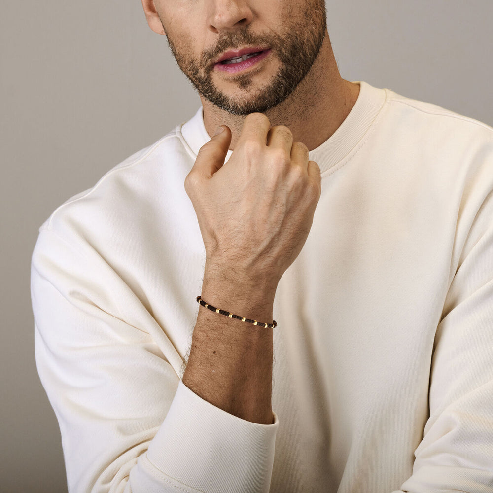 Gouden armband heren satijn 14K met rubber/nylon/leer