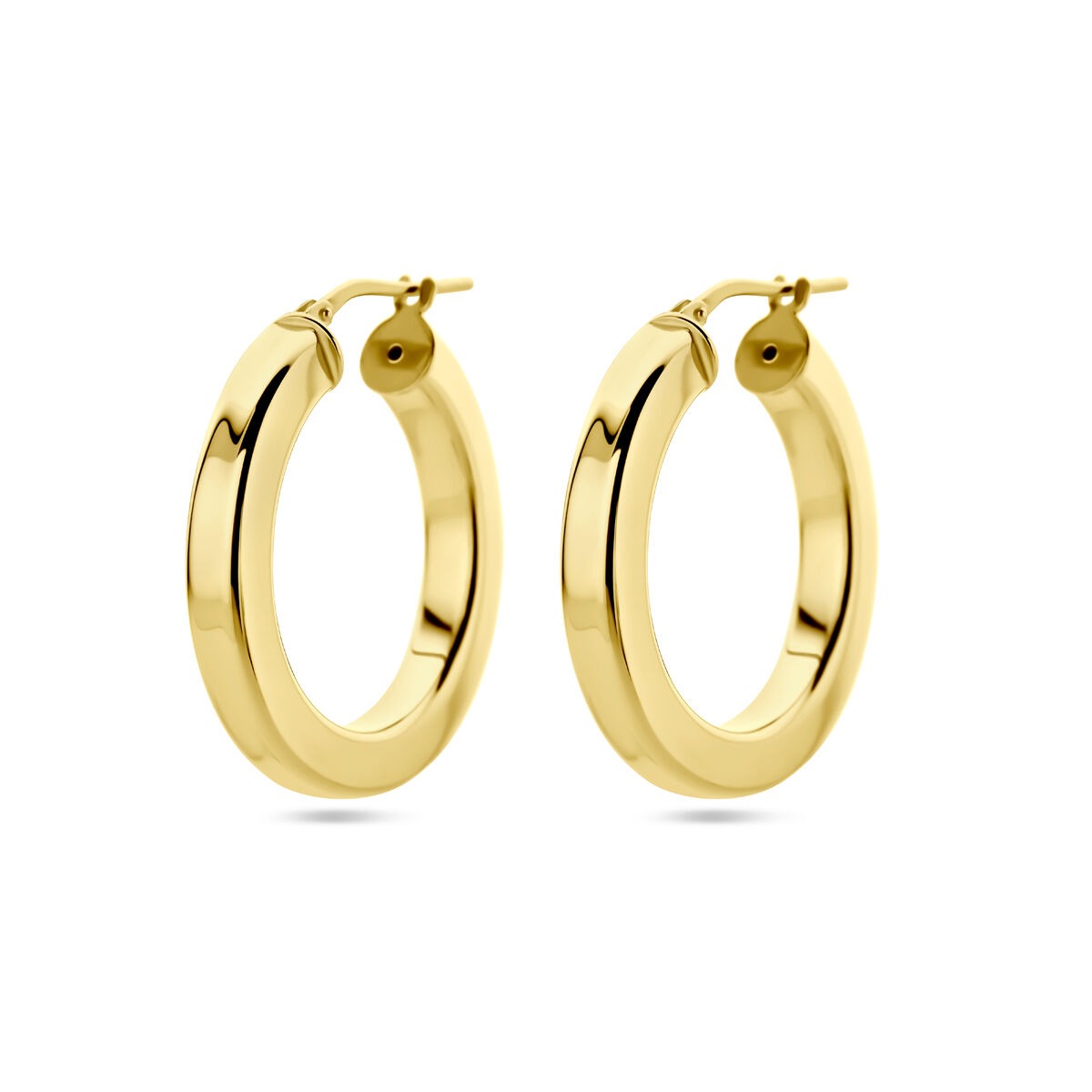 Deze goudkleurige oorringen voor dames zijn een moderne klassieker met een strakke, minimalistische uitstraling. Vervaardigd uit 925 zilver en afgewerkt met een warme geelgouden plating, vormen ze een stijlvol statement. De vlakke vormgeving en royale afmeting van 27,5 x 4 mm geven het sieraad een krachtige, maar verfijnde uitstraling.