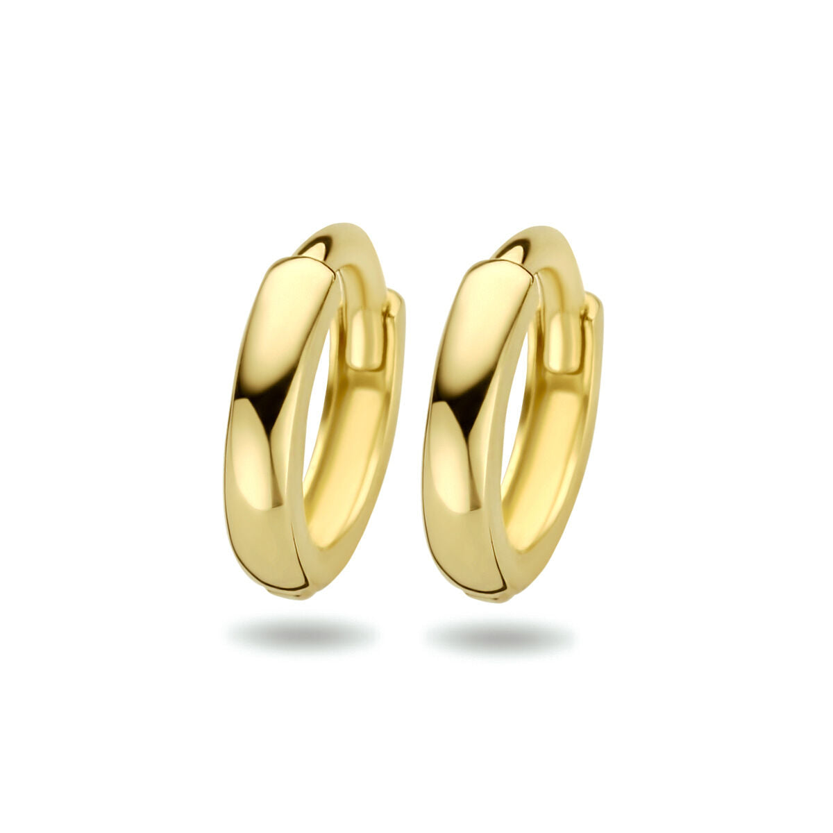 14k Geelgouden klapoorringen. De oorringen hebben een diameter van 8mm en een dikte van 1.6mm.